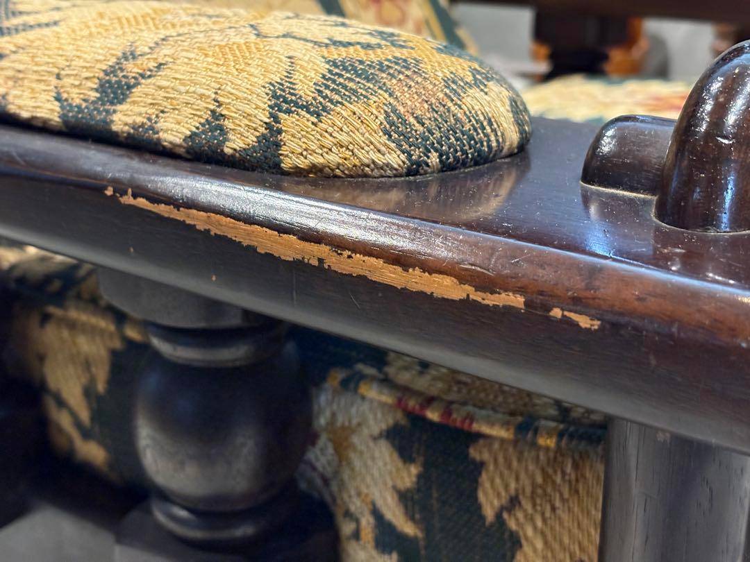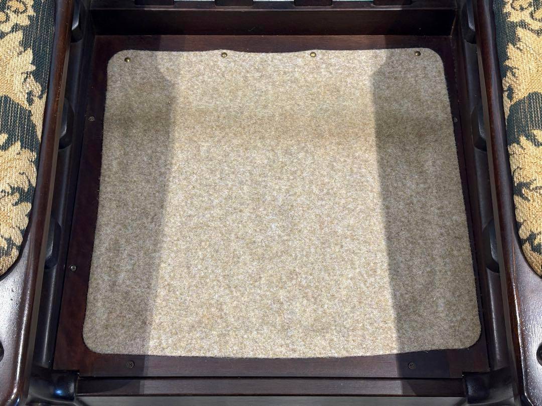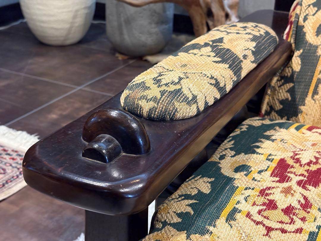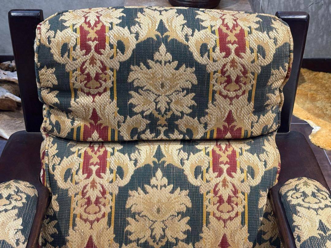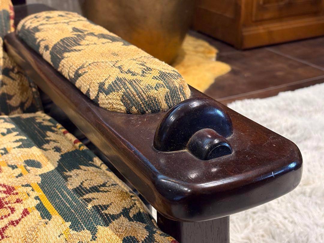 クラシックなファブリックの張地が高級感を演出し、重厚で存在感のあるデザインとなっています。
