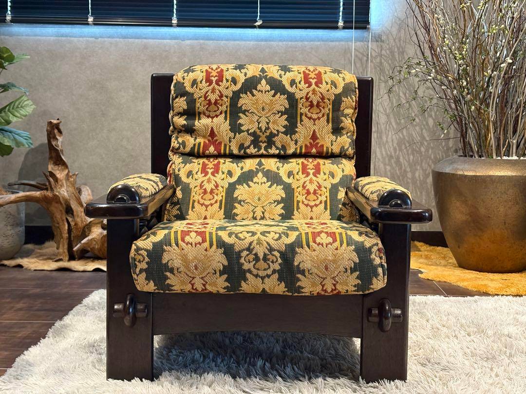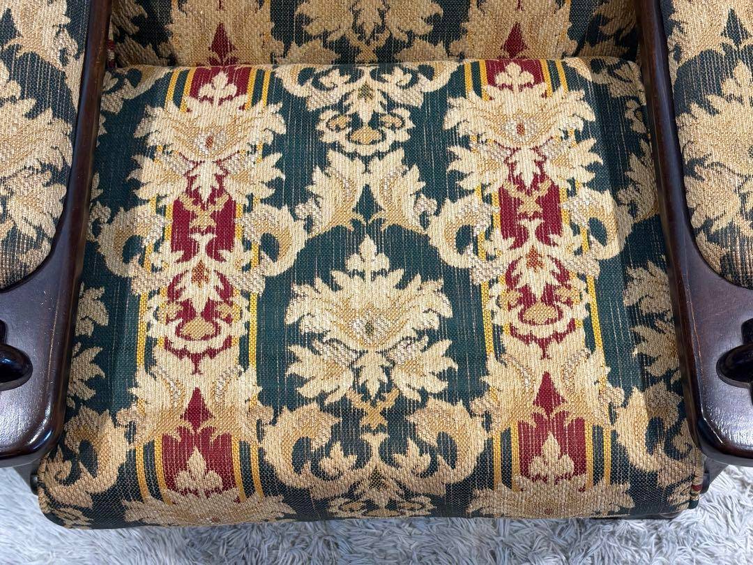 karimoku カリモク 1人掛けソファ 1Pソファ ファブリックソファ 木製フレームソファ アンティーク家具 ビンテージ家具 クラシック家具 高級家具 応接ソファ リビングソファ カリモク家具 北欧インテリア レトロ家具 ナチュラルインテリア デザインソファ モダンインテリア ナチュラルモダン おしゃれ家具 インテリア家具 ゴブラン調