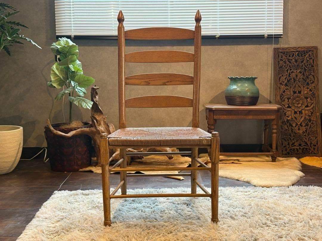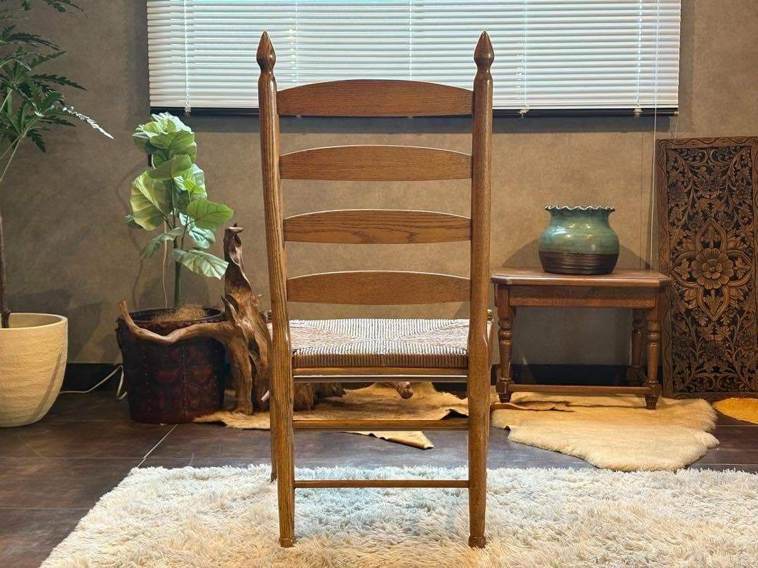 ヴィンテージ ビンテージ ヴィンテージ オーク材 無垢材 ラッシュシート ペーパーコード ラッシュシートチェア ラダーバック ウィングバッグチェア ハイバッグチェア レトロ 昭和レトロ シェーカーチェア ラダーバッグ