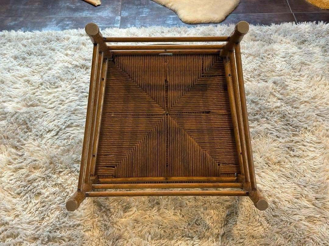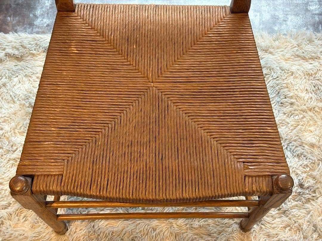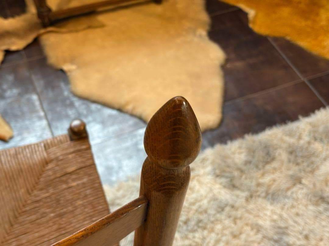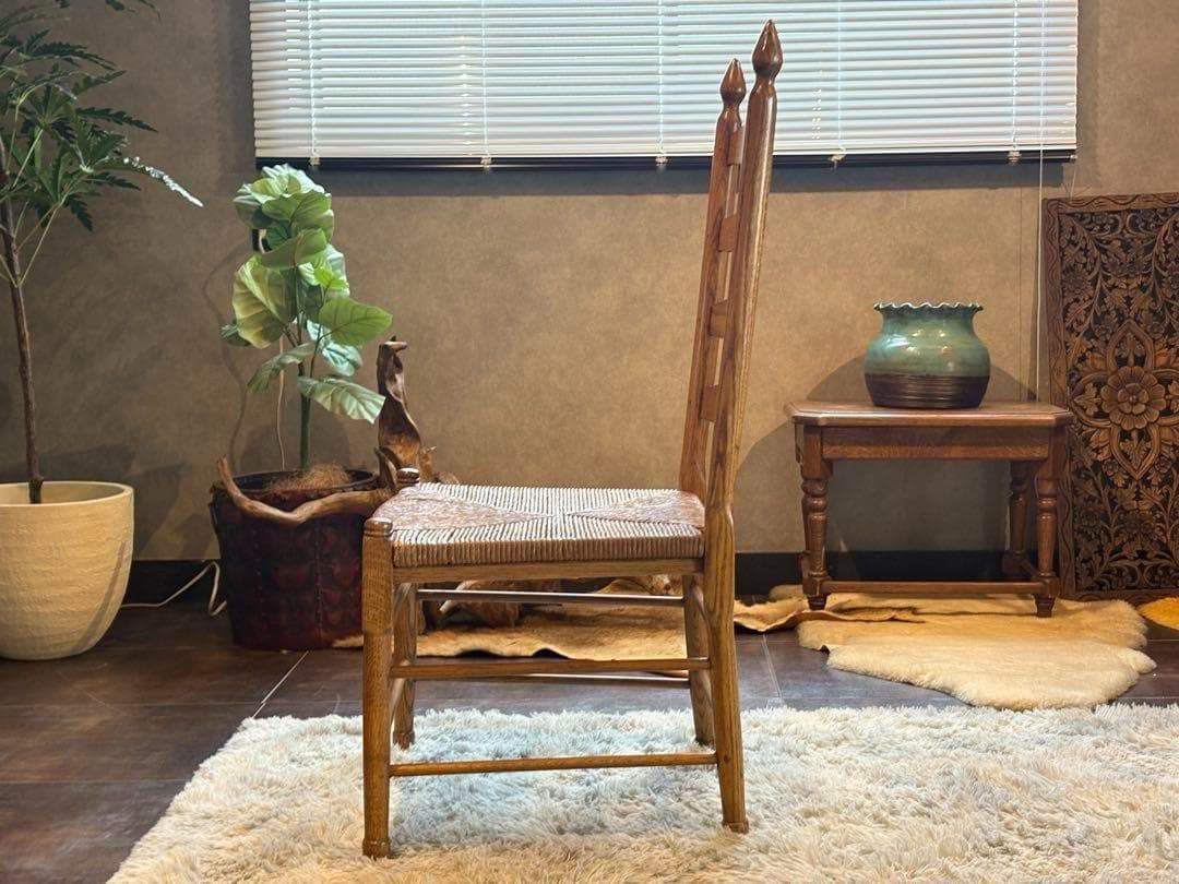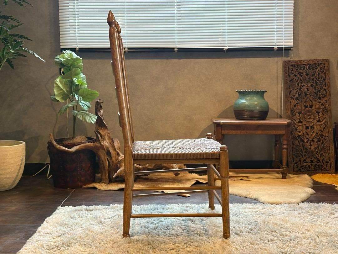 オーク無垢材を使用した堅牢なフレームに、ラッシュシートの温かみある座面が特徴的で、クラシカルなデザインが際立ちます。