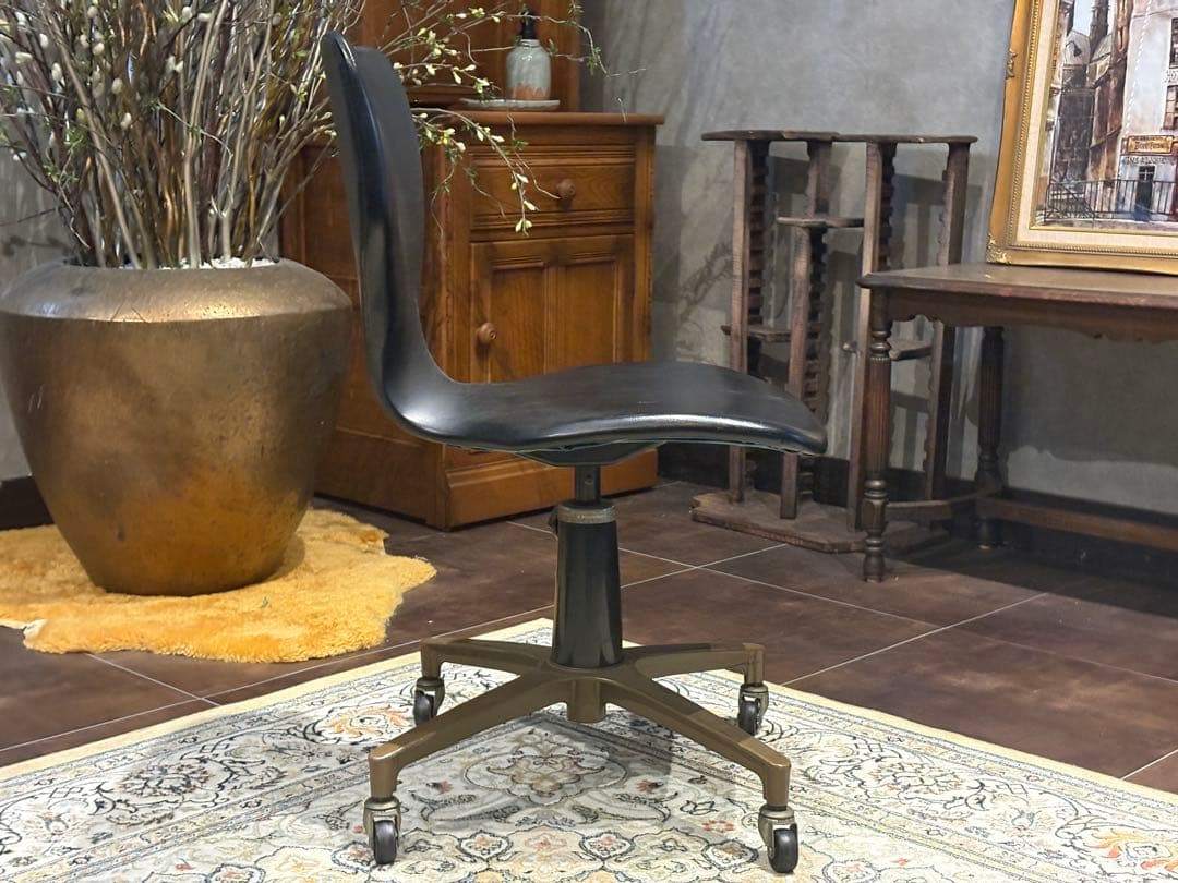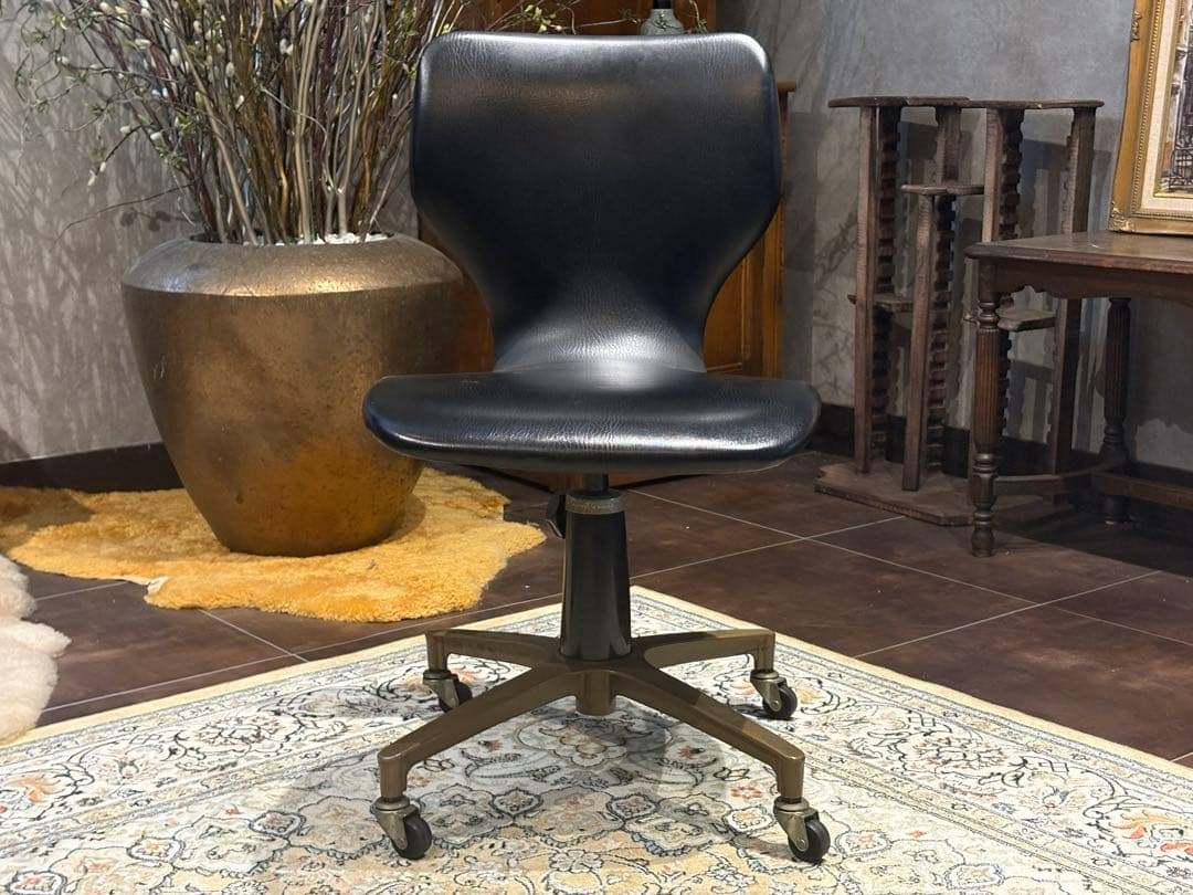 ヴィンテージチェア オールドチェア デスクチェア ワークチェア キャスターチェア 合皮レザー ブラックチェア レトロ インダストリアル ビンテージ 回転椅子 書斎家具 店舗什器 インテリア家具