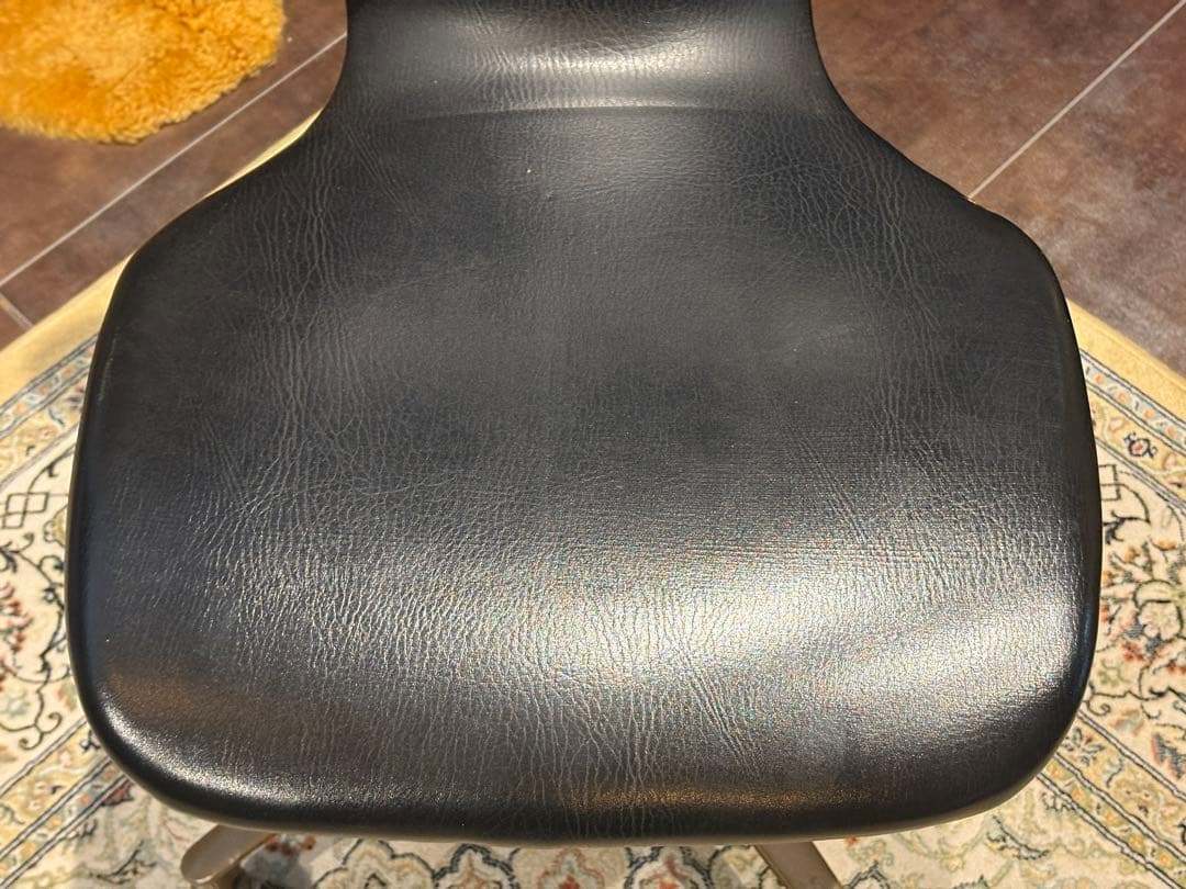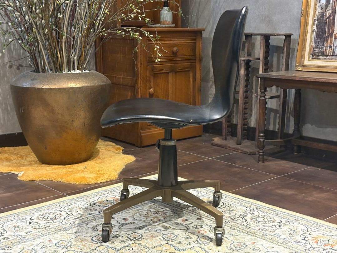 ブラックの合皮レザーが印象的なオールドヴィンテージチェアです。