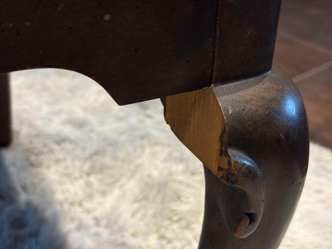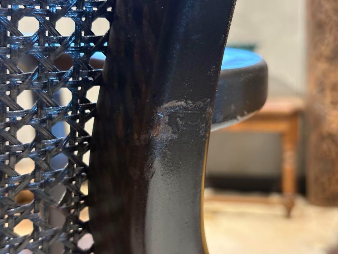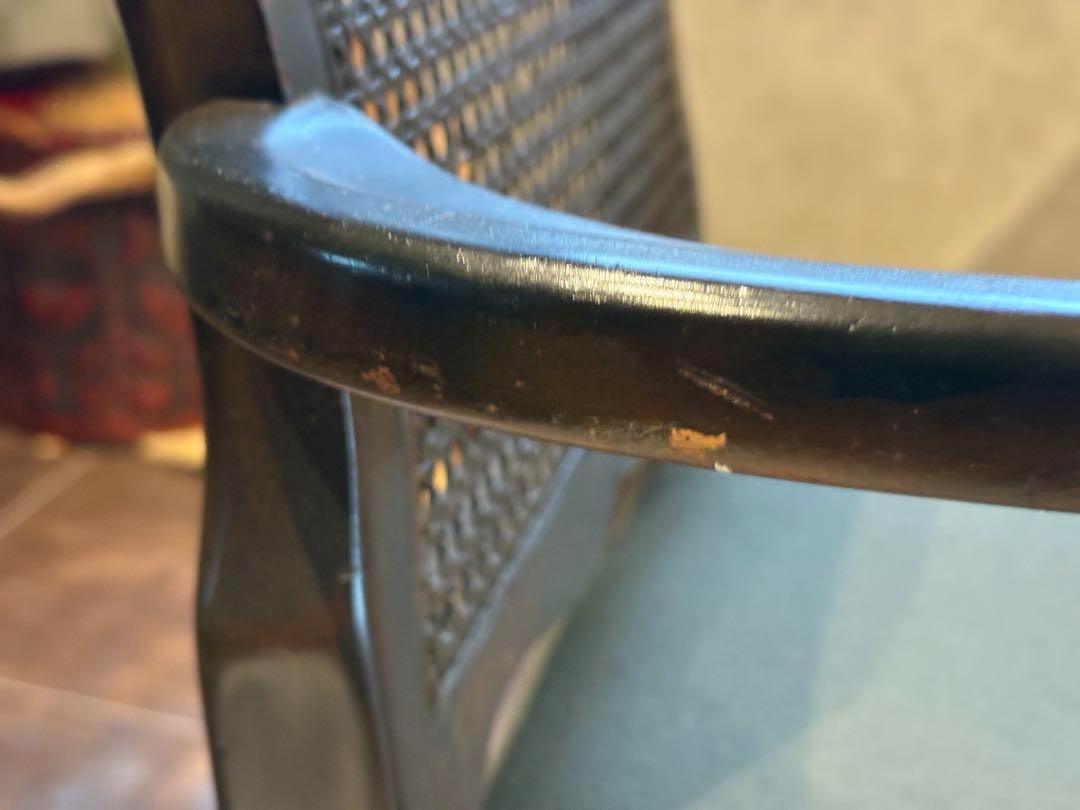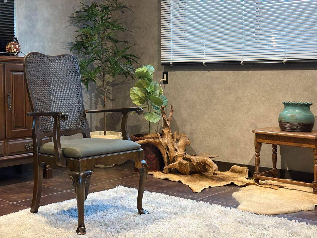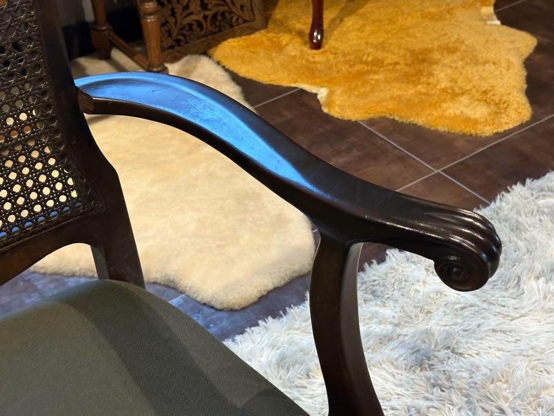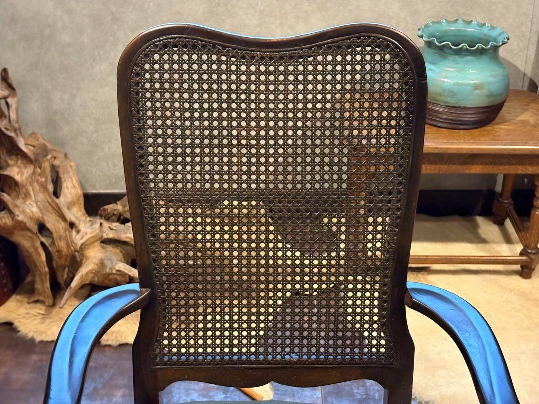 クラシカルな曲線美と籐張りの背もたれが印象的で、洋風アンティークやコロニアルスタイルの空間によく馴染みます。