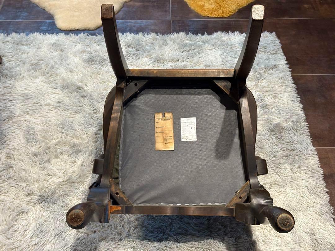 ビンテージ感を損なわないよう、座面裏のタグは一度剥がしたうえで丁寧に貼り直しております。