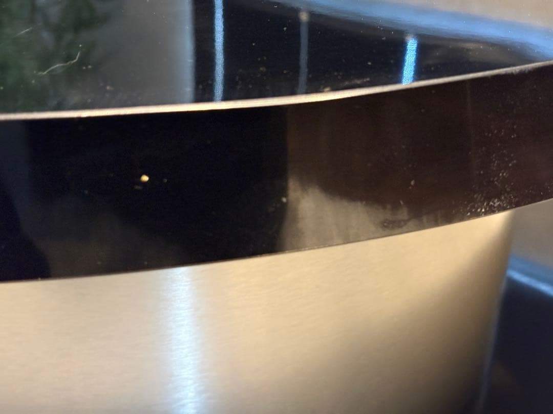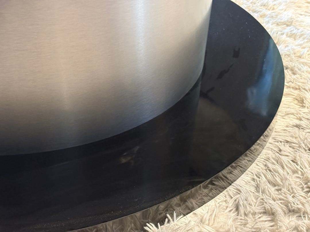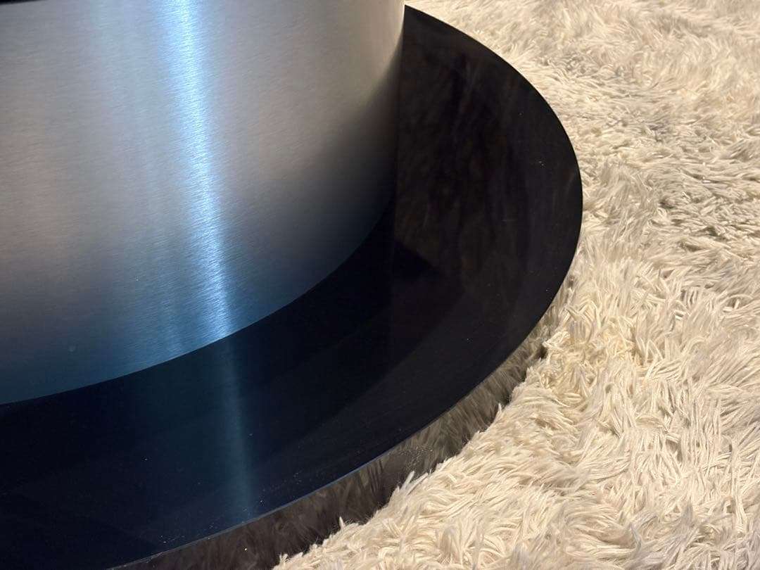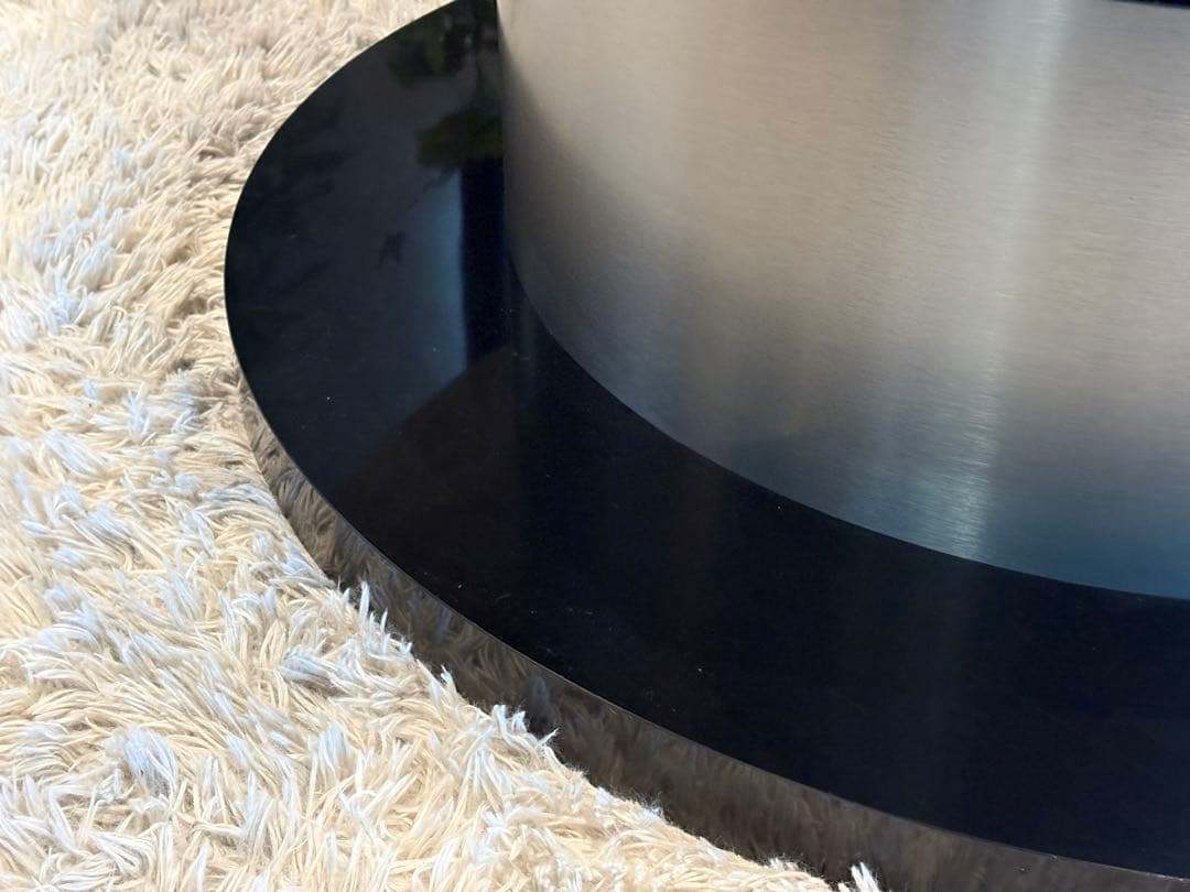 艶のあるブラック天板と、シルバーの円柱ベースの組み合わせが、