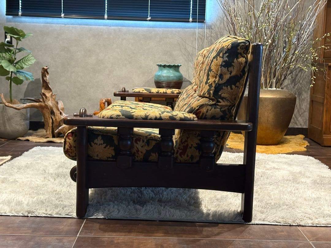 木製フレームにクラシカルなファブリックを組み合わせ、