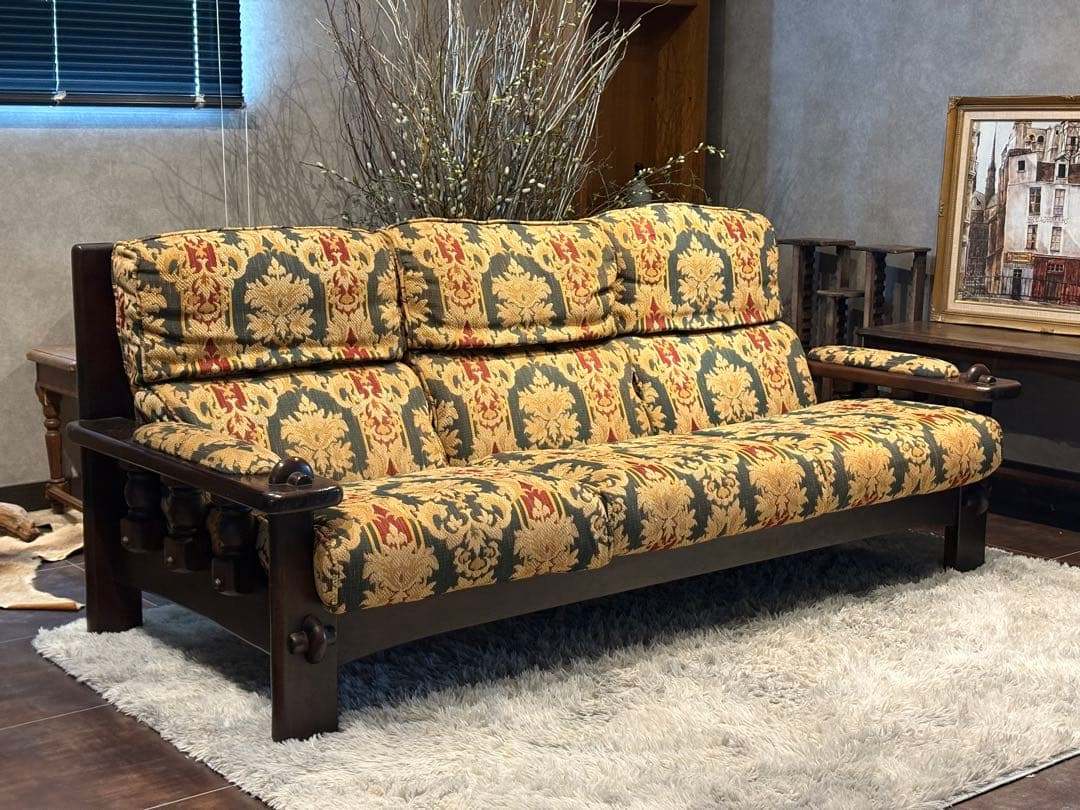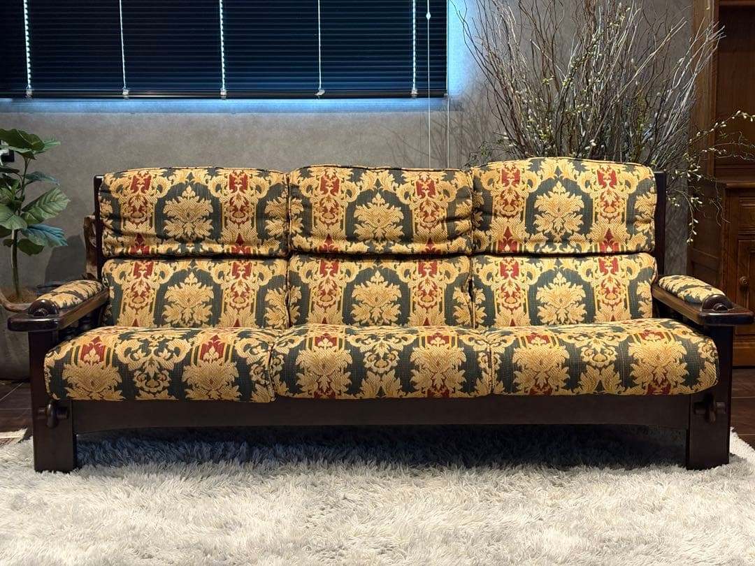 karimoku カリモク 3人掛けソファ 3Pソファ ファブリックソファ 木製フレームソファ アンティーク家具 ビンテージ家具 クラシック家具 高級家具 応接ソファ リビングソファ ナチュラルインテリア 北欧インテリア レトロ家具 カリモク家具 デザインソファ モダンインテリア ナチュラルモダン おしゃれ家具 インテリア家具 オールドカリモク ゴブラン調
