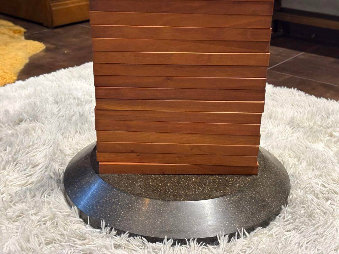 ドイツの「Jonny B」による、彫刻的存在感を放つ回転式CDラック。