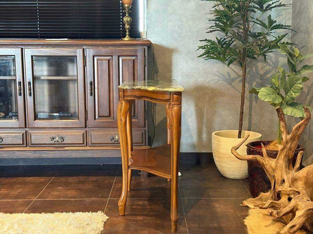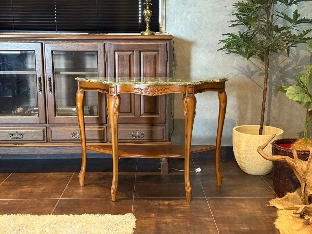 優美な曲線美と繊細な木彫装飾が魅力のクラシックコンソールテーブル。