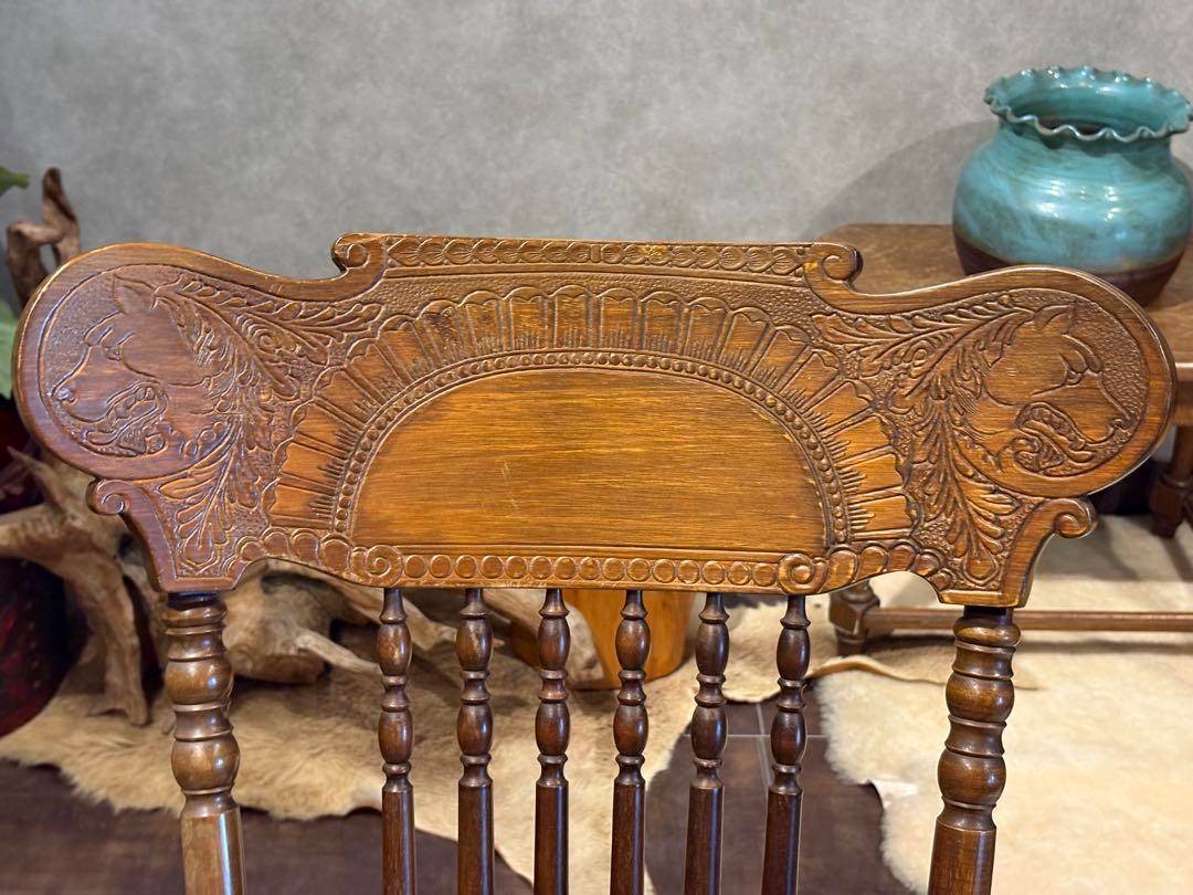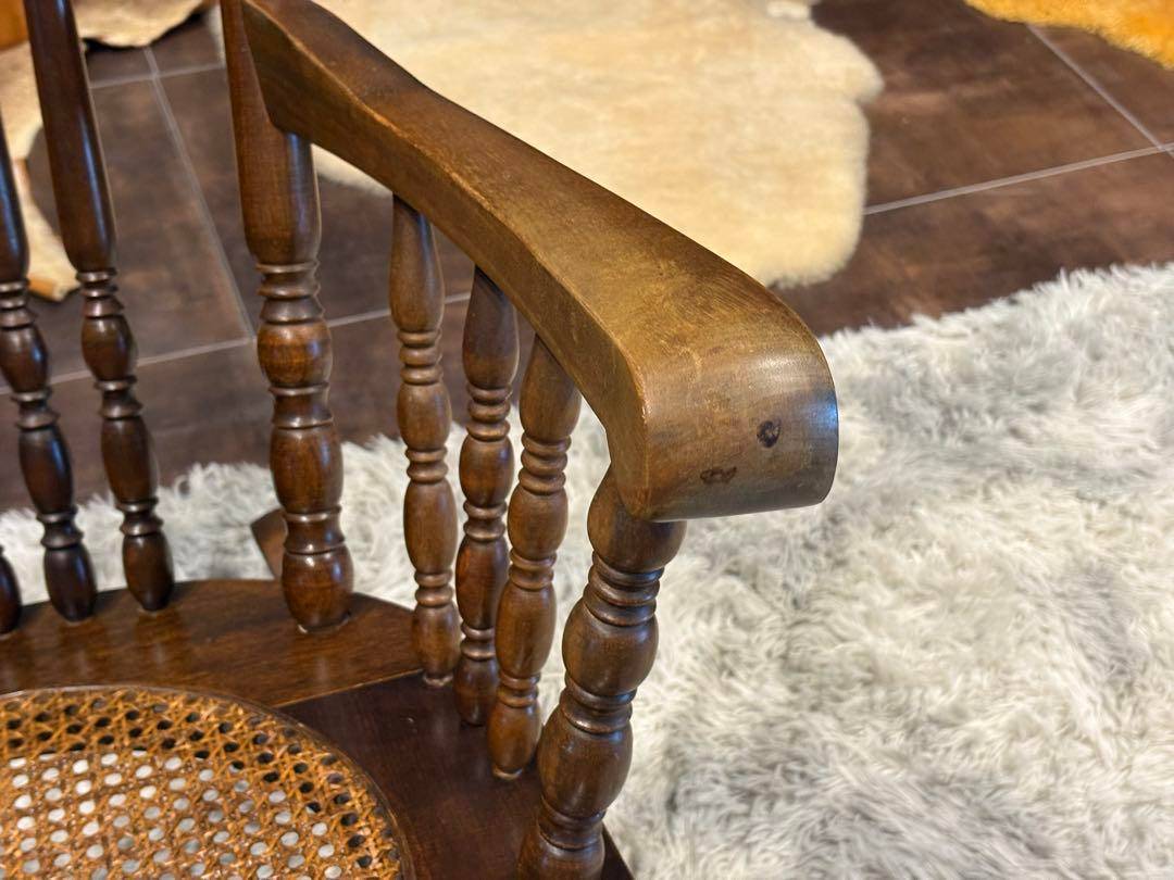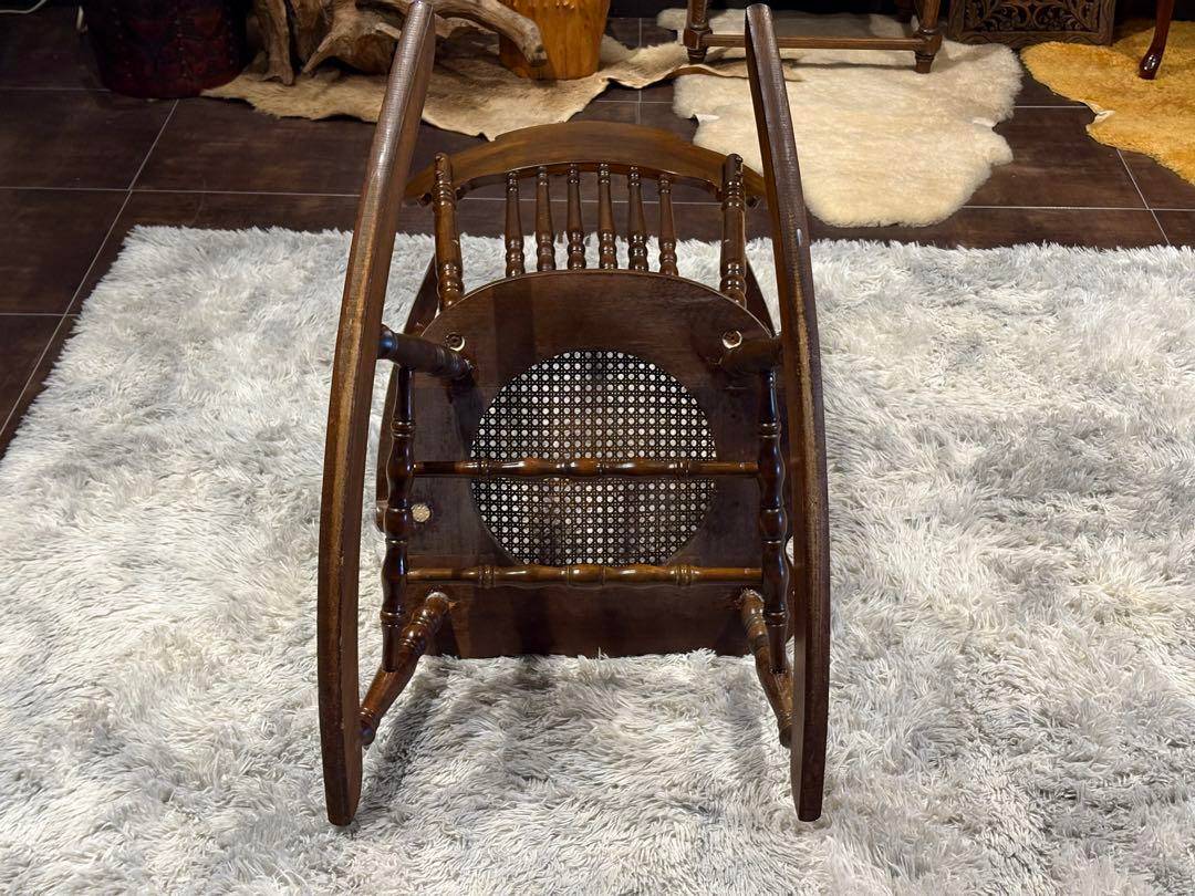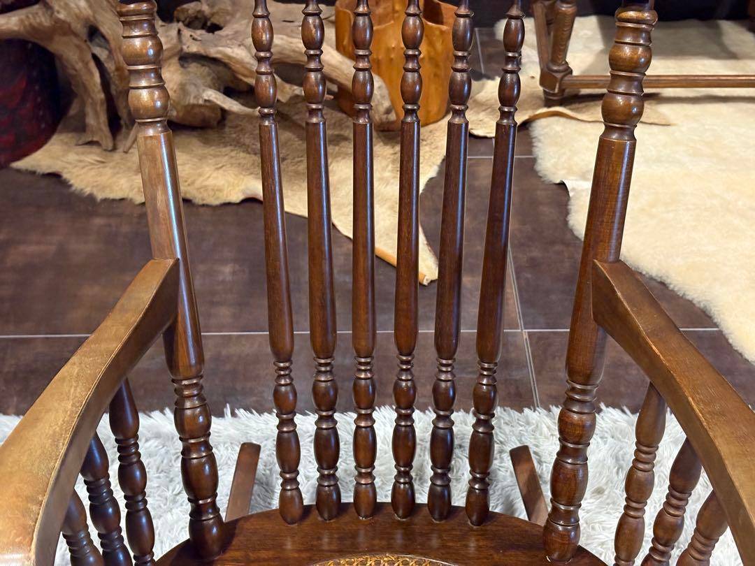 細やかなろくろ脚と背の装飾が美しい、ヴィンテージのウルフロッキングチェア。