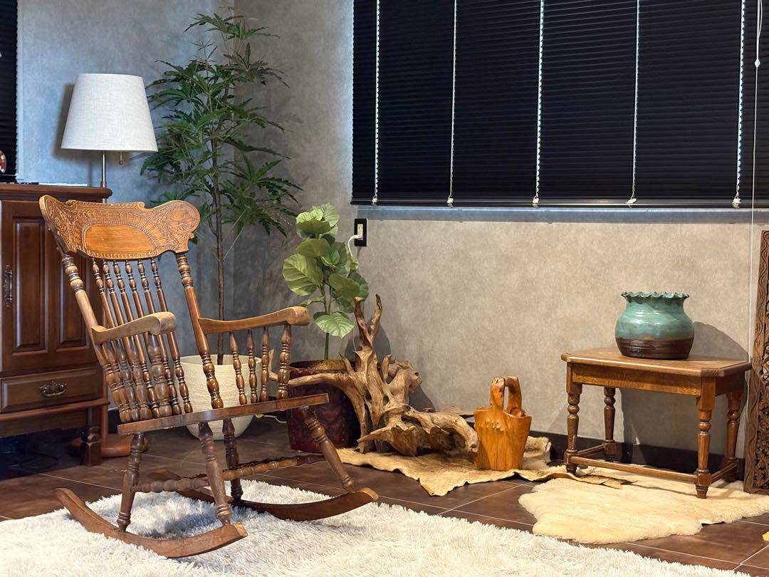無垢材の質感とアジアンテイストのかごめ編みが融合した意匠は、落ち着いた空間に静かな存在感を添えます。