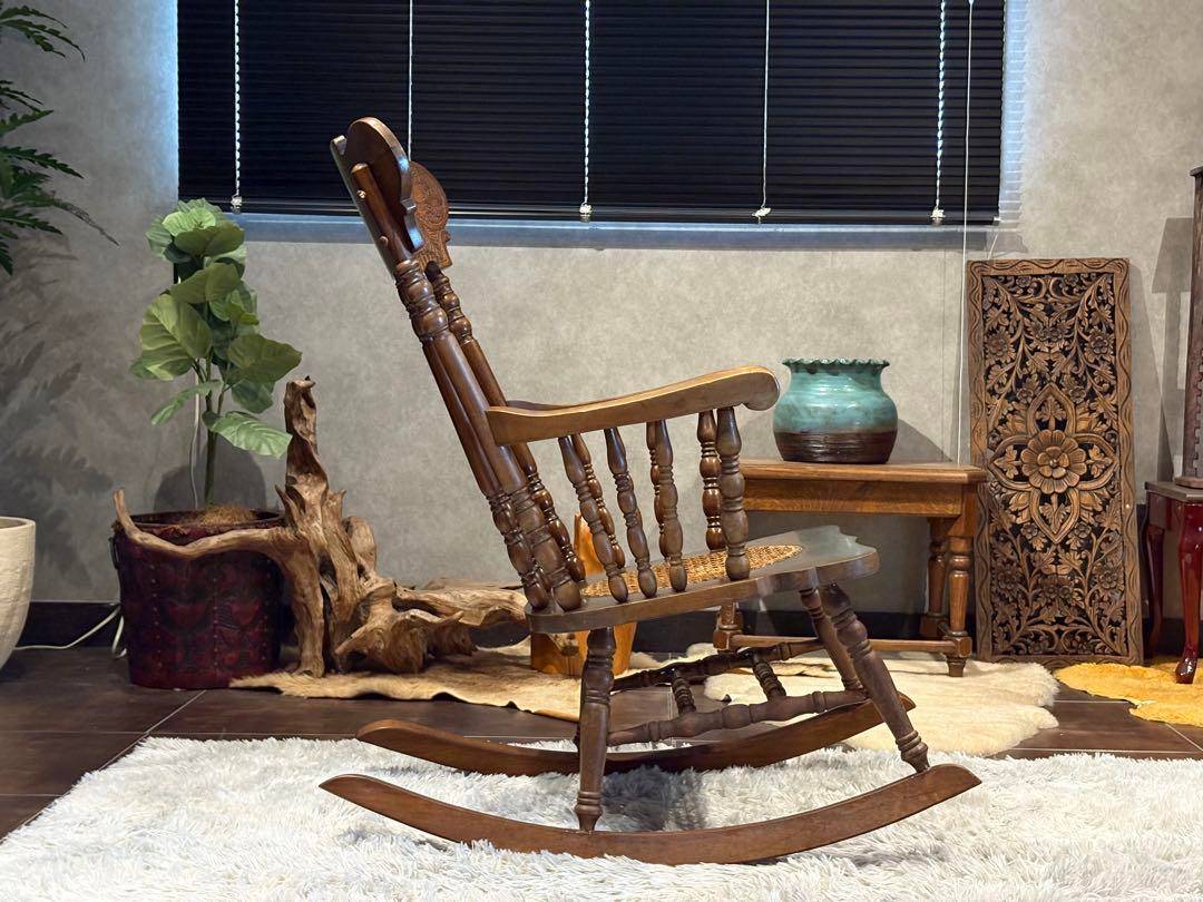 超希少 ウルフロッキングチェア 無垢材 クラシック アジアン 木彫り INR