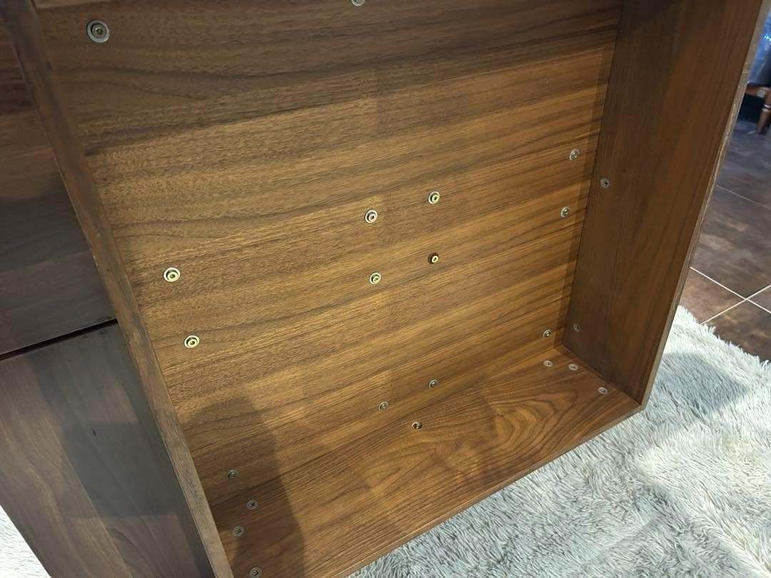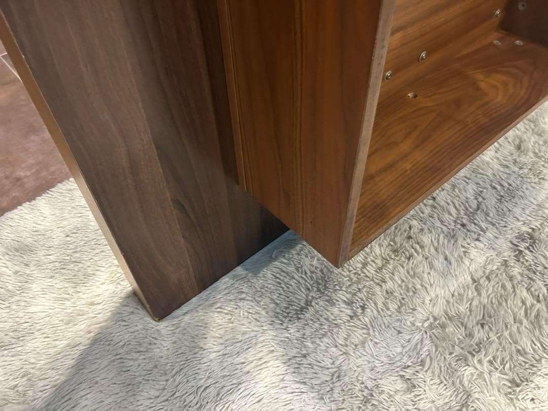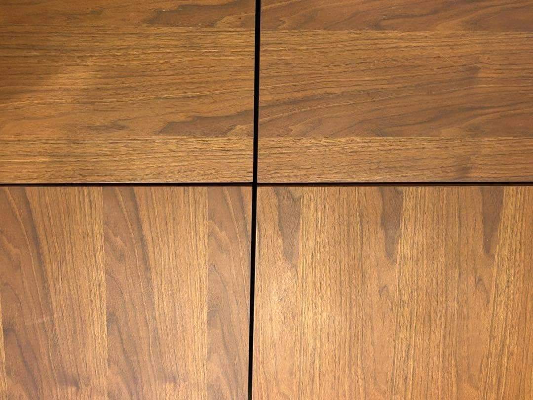 木目の美しいウォールナット調仕上げで、ミニマルながら空間に存在感を放ちます。