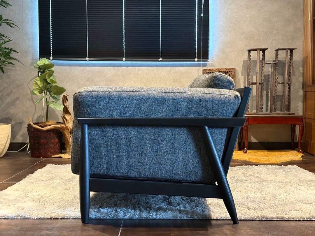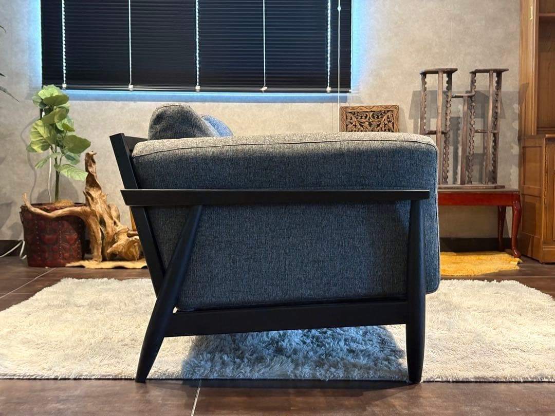 幅広のアームと、適度な奥行きの座面が、くつろぎの時間をより豊かに演出します。