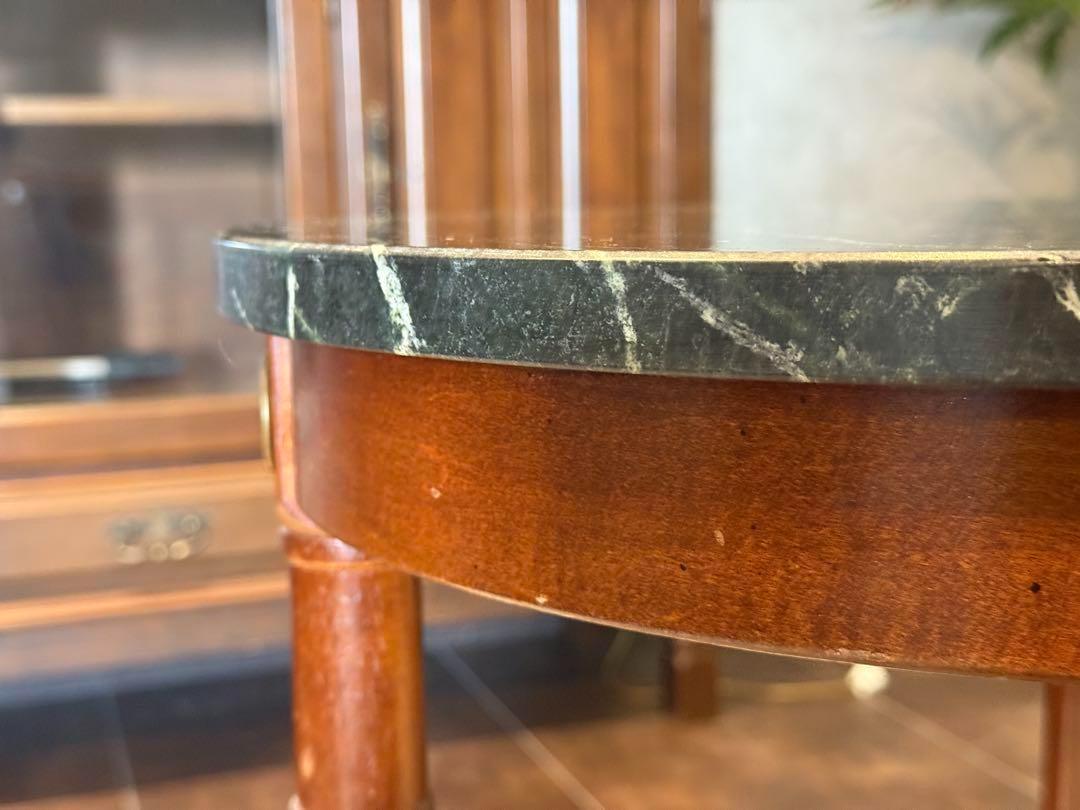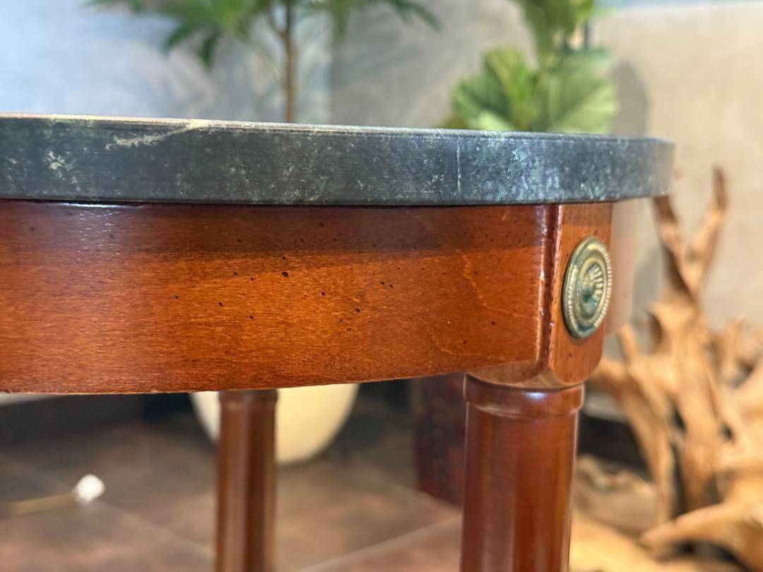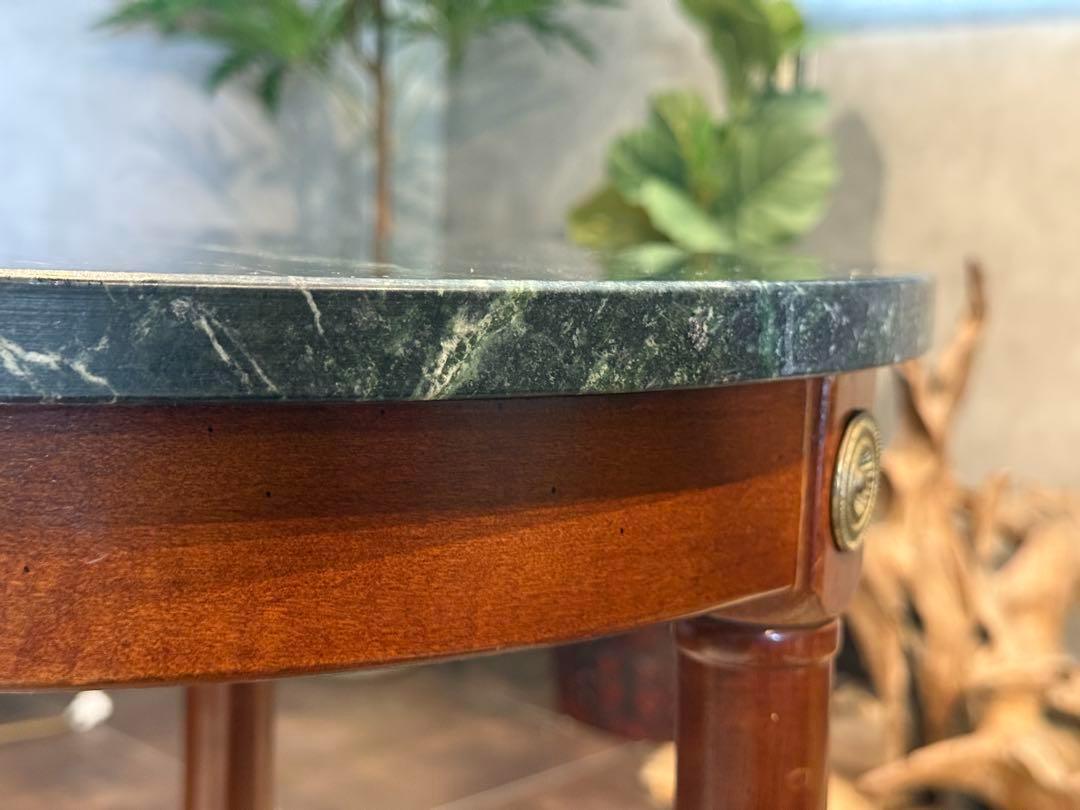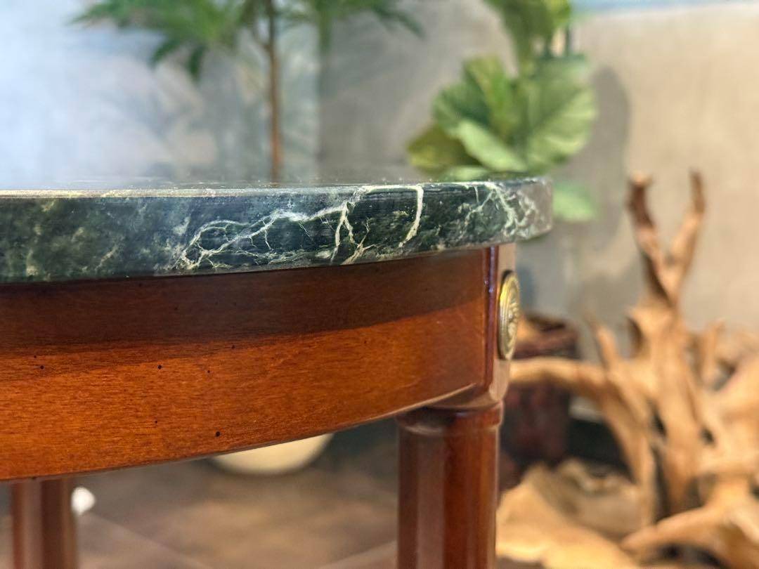 グリーンの大理石天板が美しい、ラウンド型のサイドテーブルです。