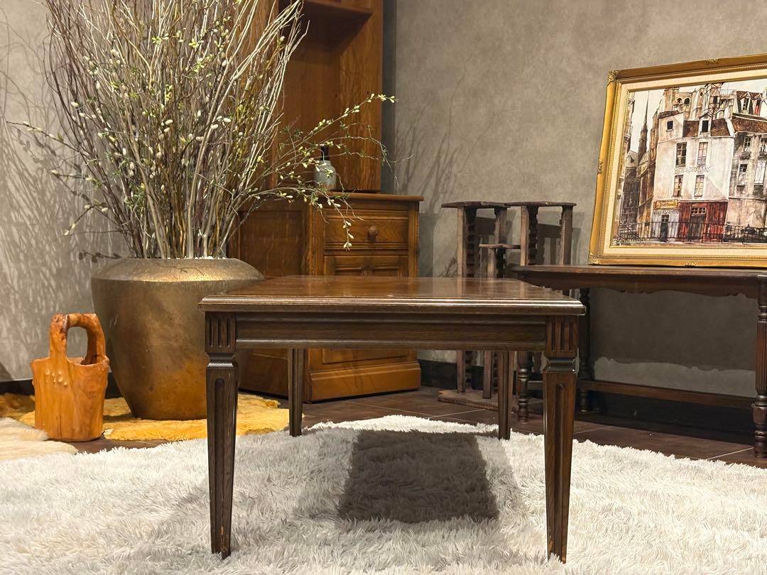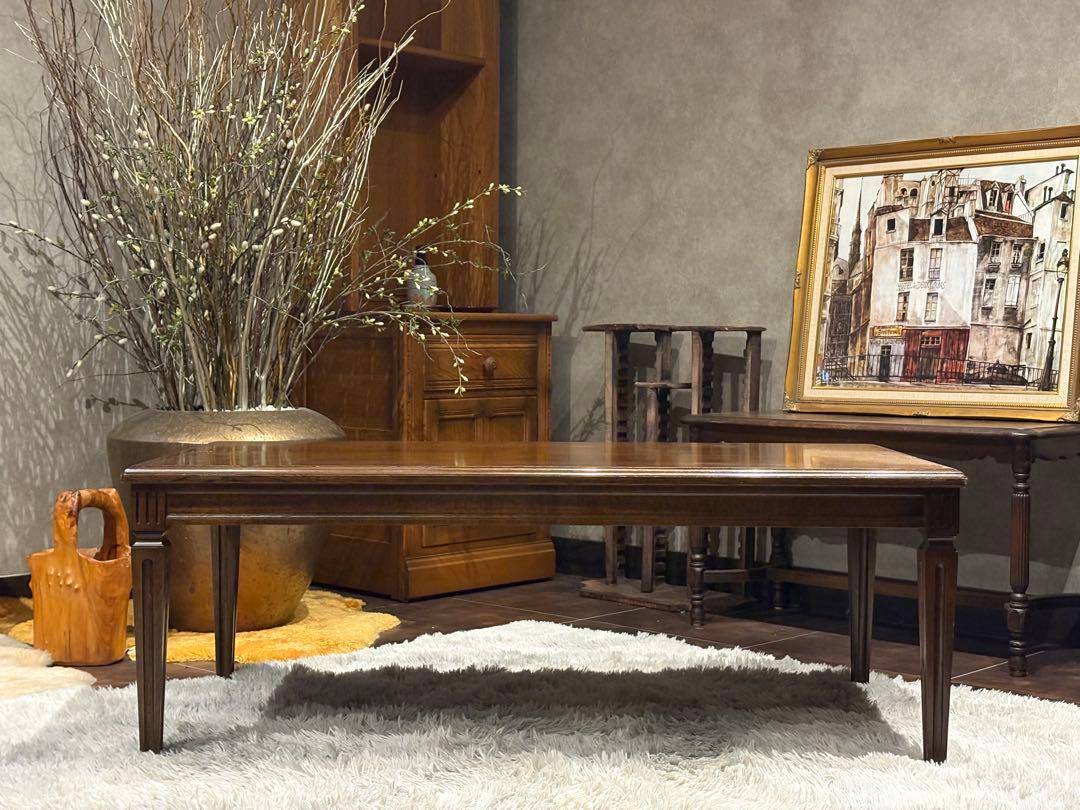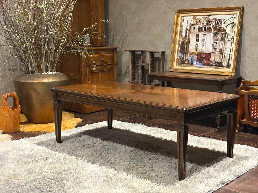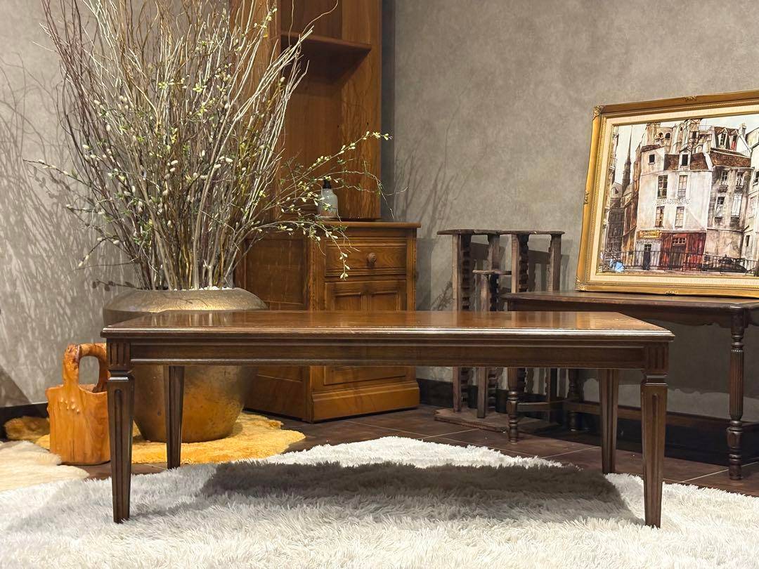 こちらはdomani(ドマーニ)製のローテーブルです。繊細な装飾が施された脚部や、落ち着きのある色合いが魅力的なクラシカルデザイン。