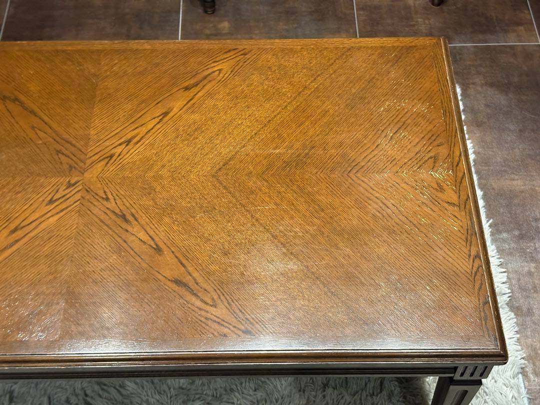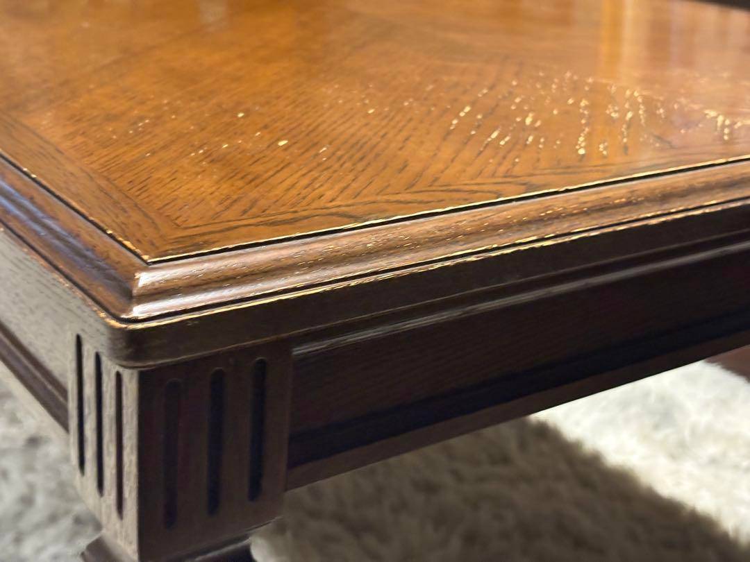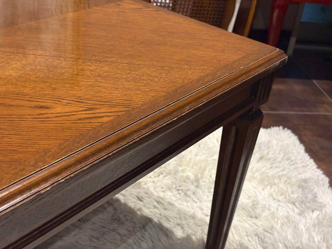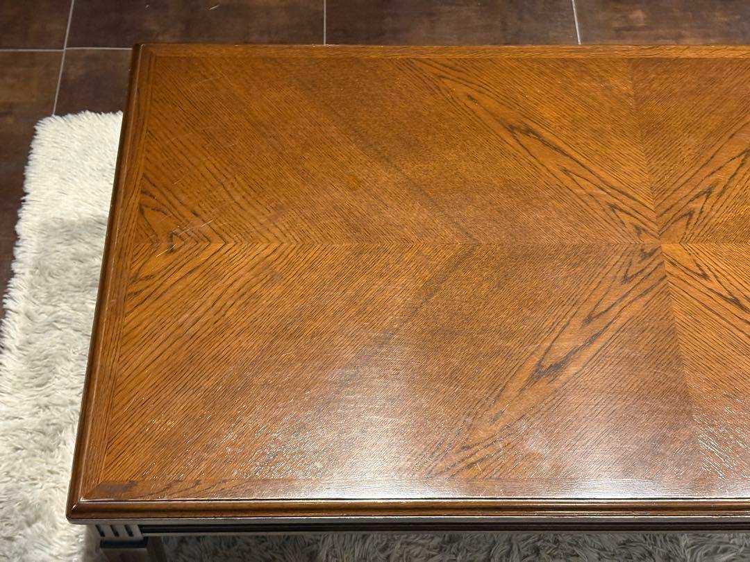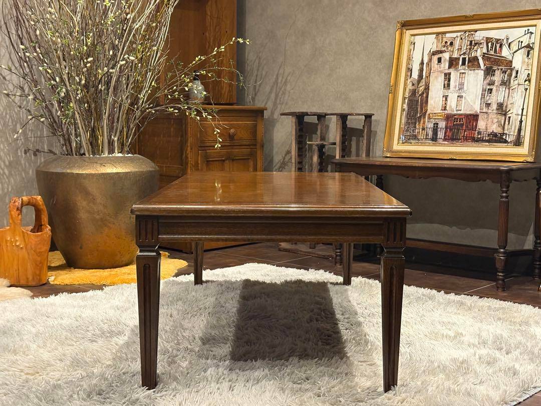 こちらはdomani(ドマーニ)製のローテーブルです。繊細な装飾が施された脚部や、落ち着きのある色合いが魅力的なクラシカルデザイン。