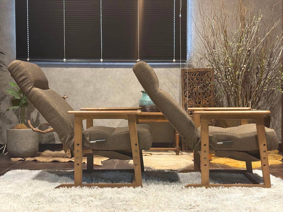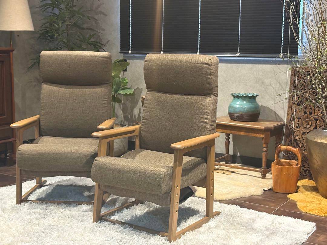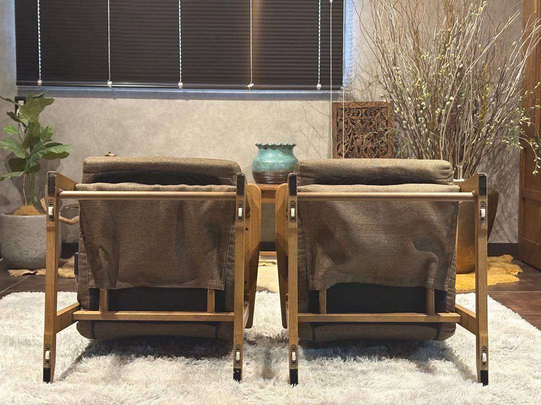 シンプルで落ち着いたデザインのアームソファ、2脚セットのご紹介です。