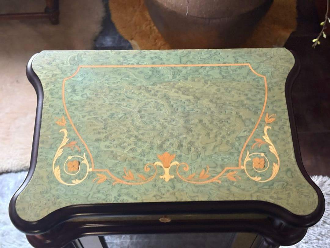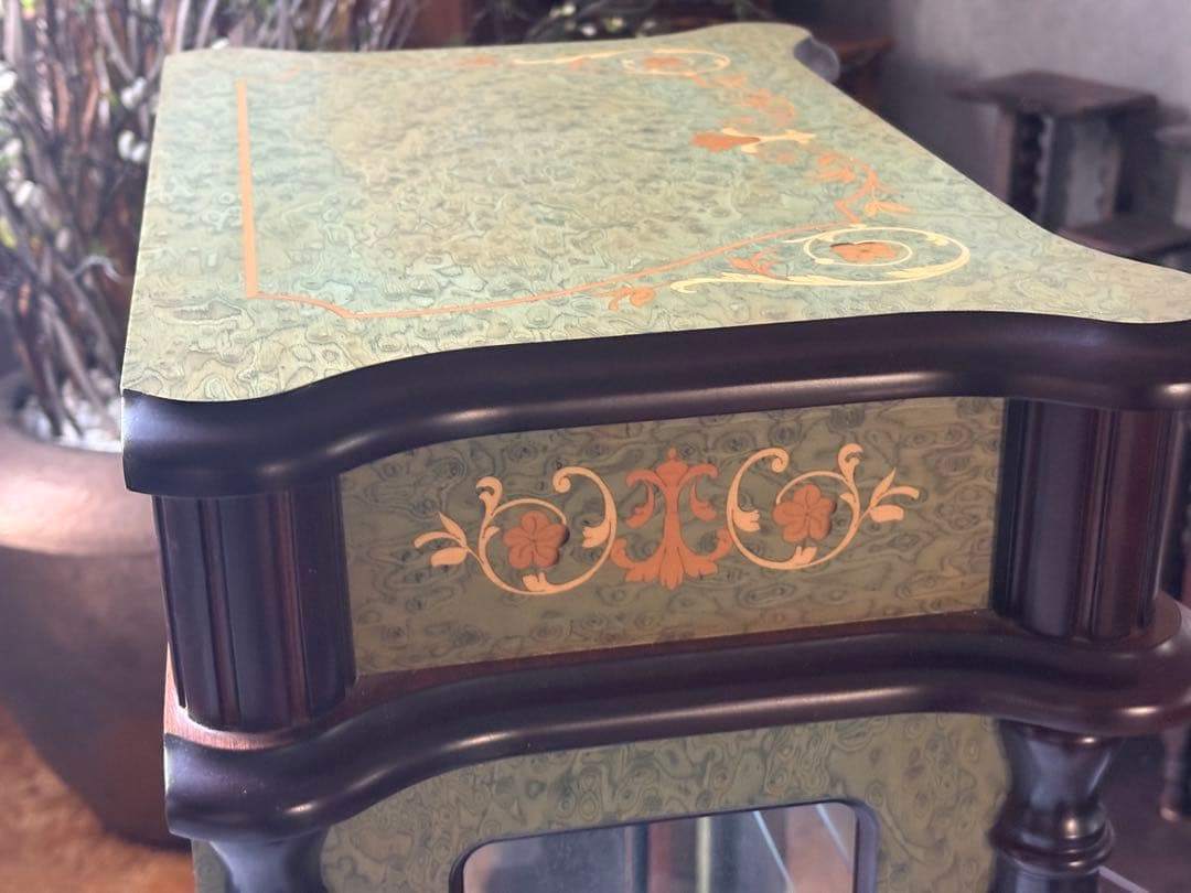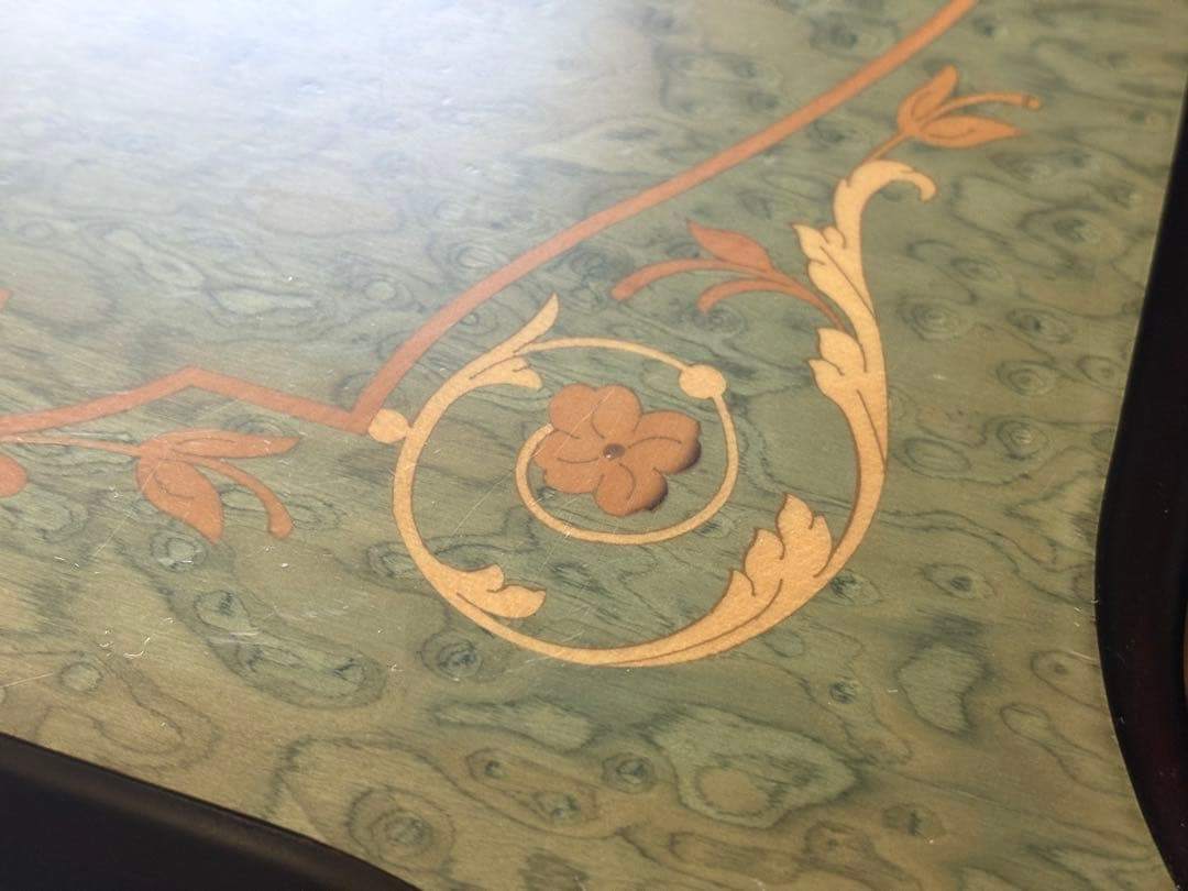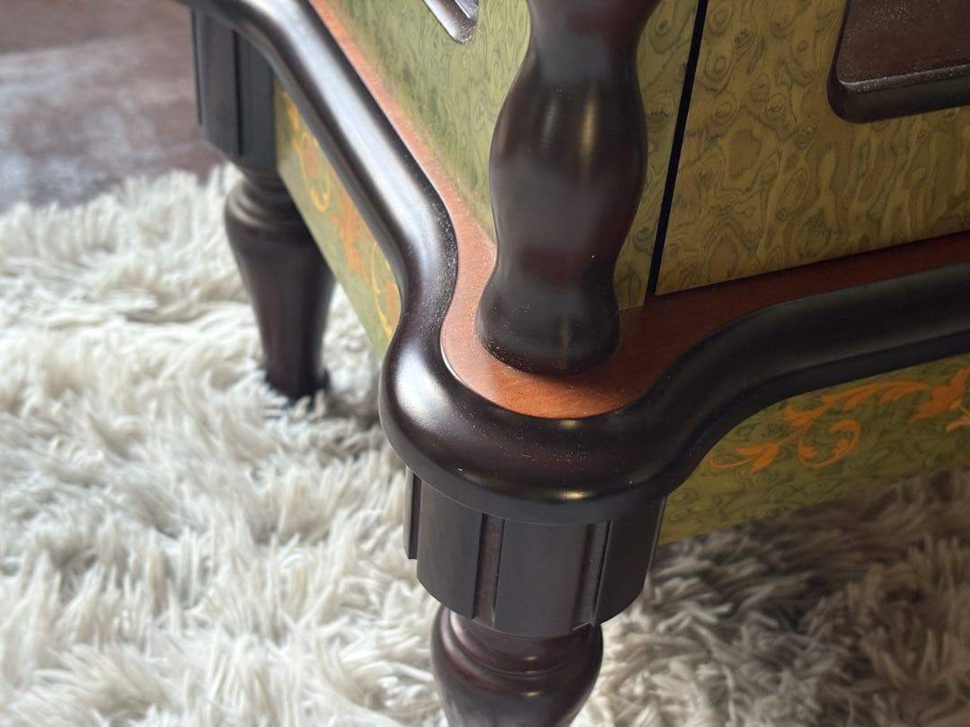 繊細な木象嵌装飾と、アンティーク調の装飾が高級感を演出。