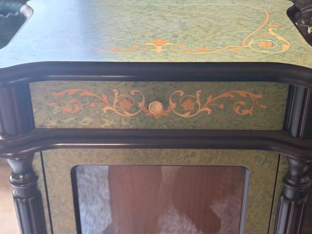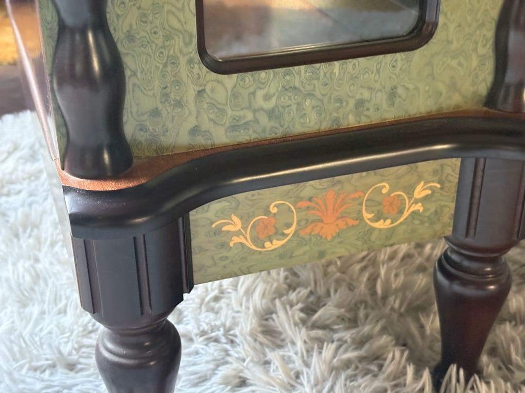 美しい象嵌細工が施された、クラシカルなキャビネット/ガラスショーケースです。