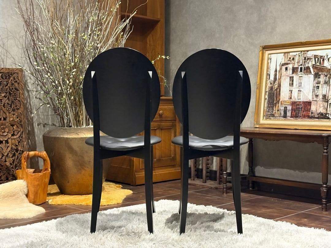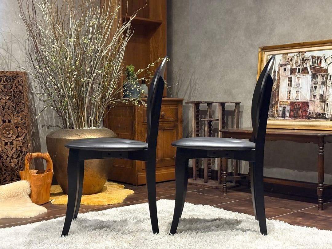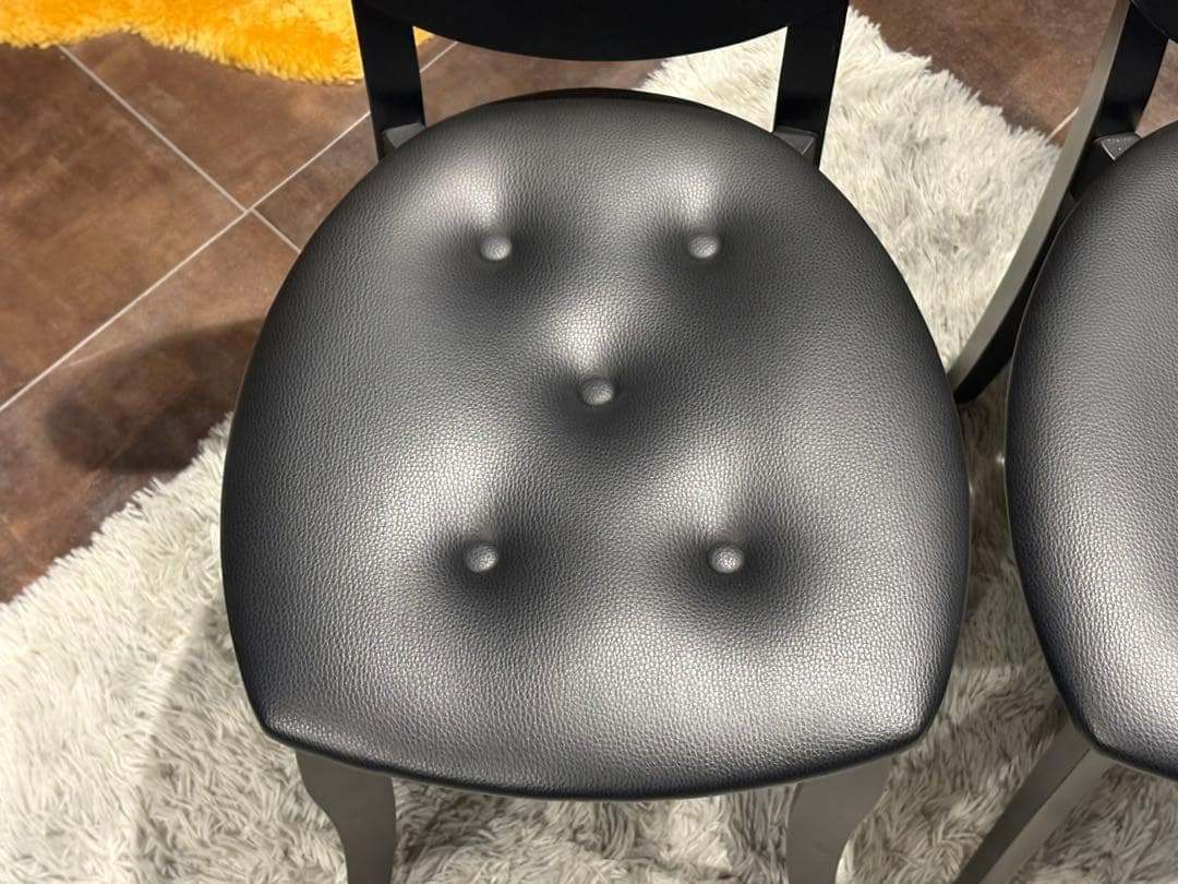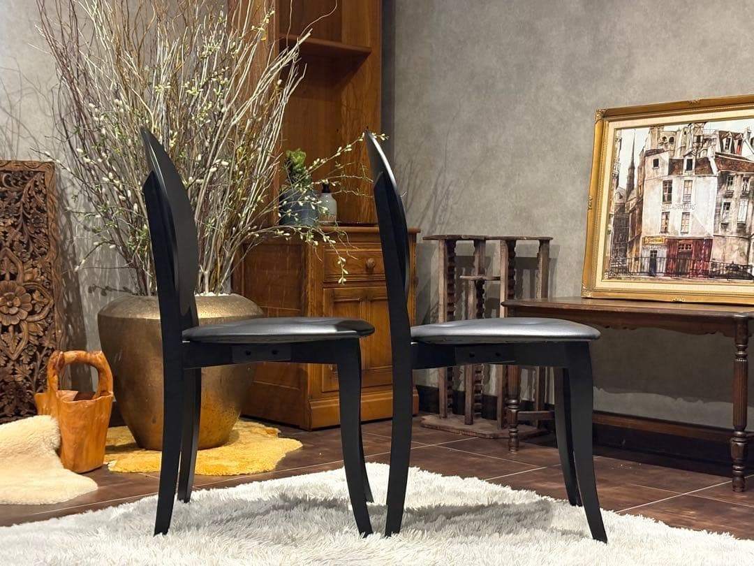 シンプルながらも存在感のあるブラックレザーのダイニングチェア。