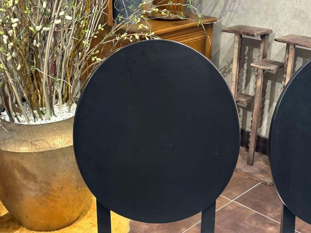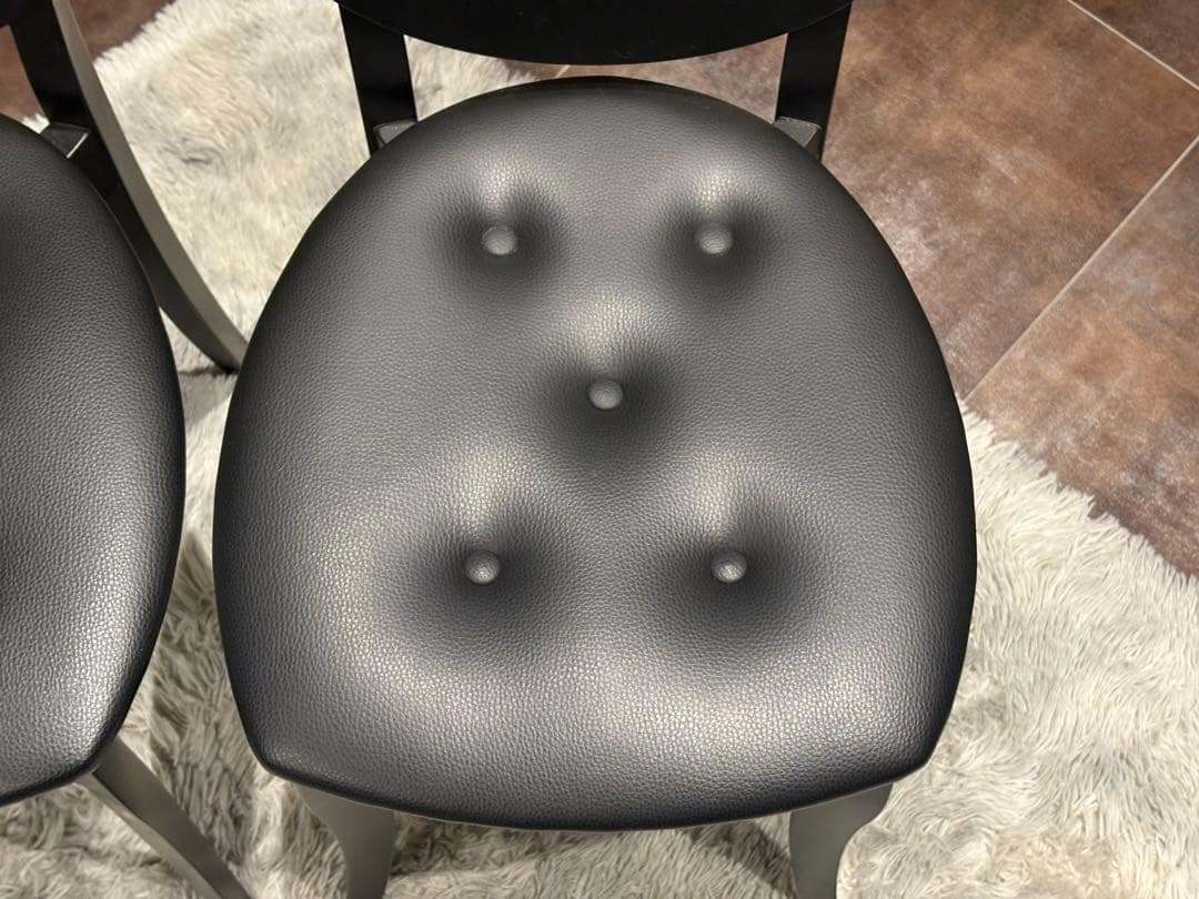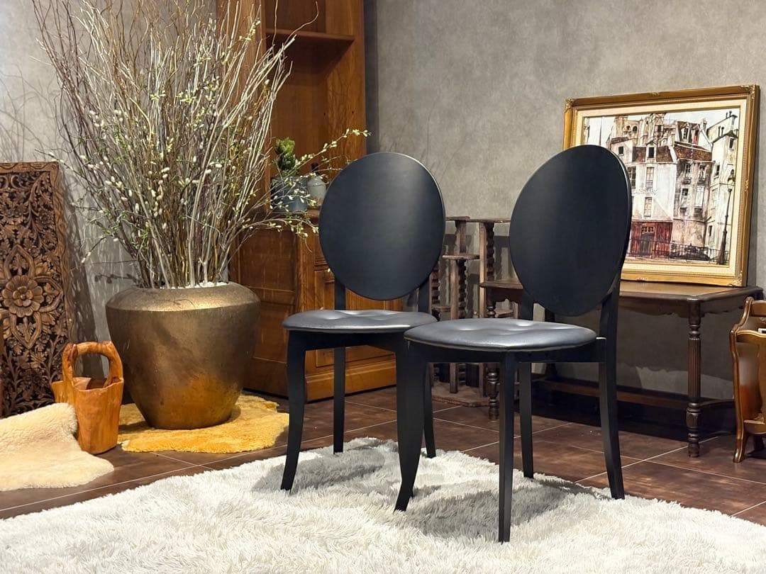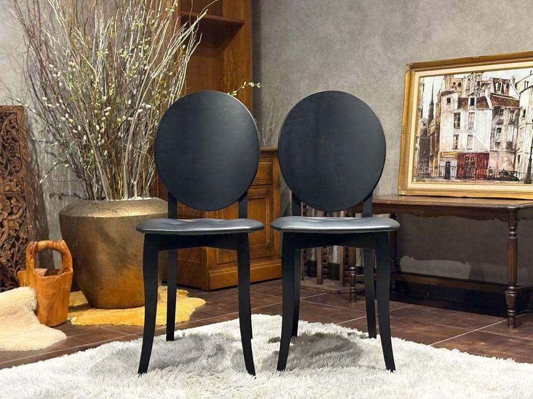 シンプルながらも存在感のあるブラックレザーのダイニングチェア。