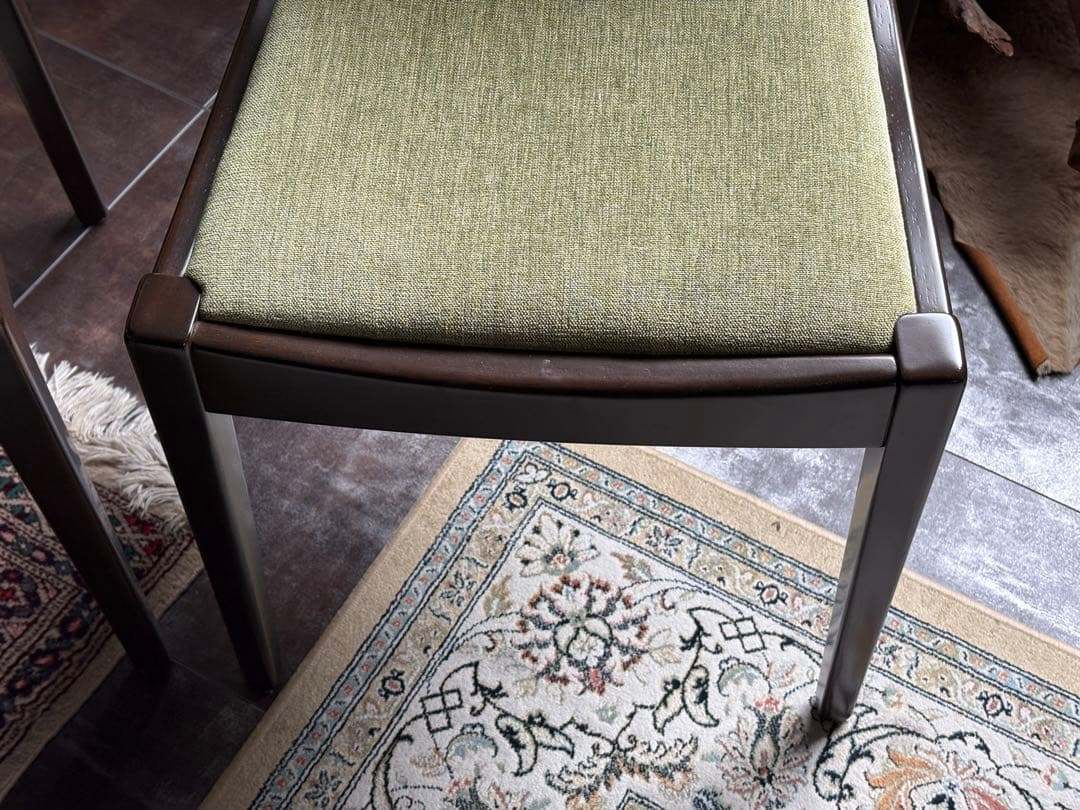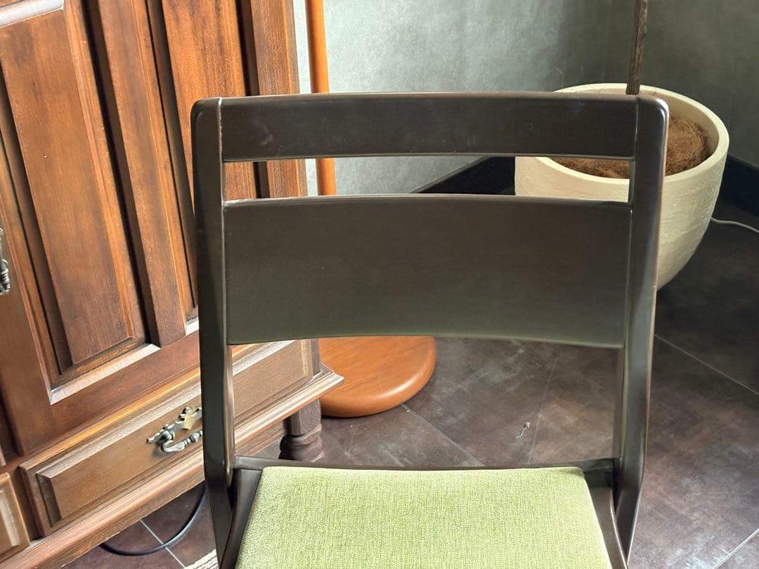 直線的で無駄のないフォルムに、落ち着いたダークトーンのフレームとやわらかな座面カラーを組み合わせた、空間を選ばない一脚。