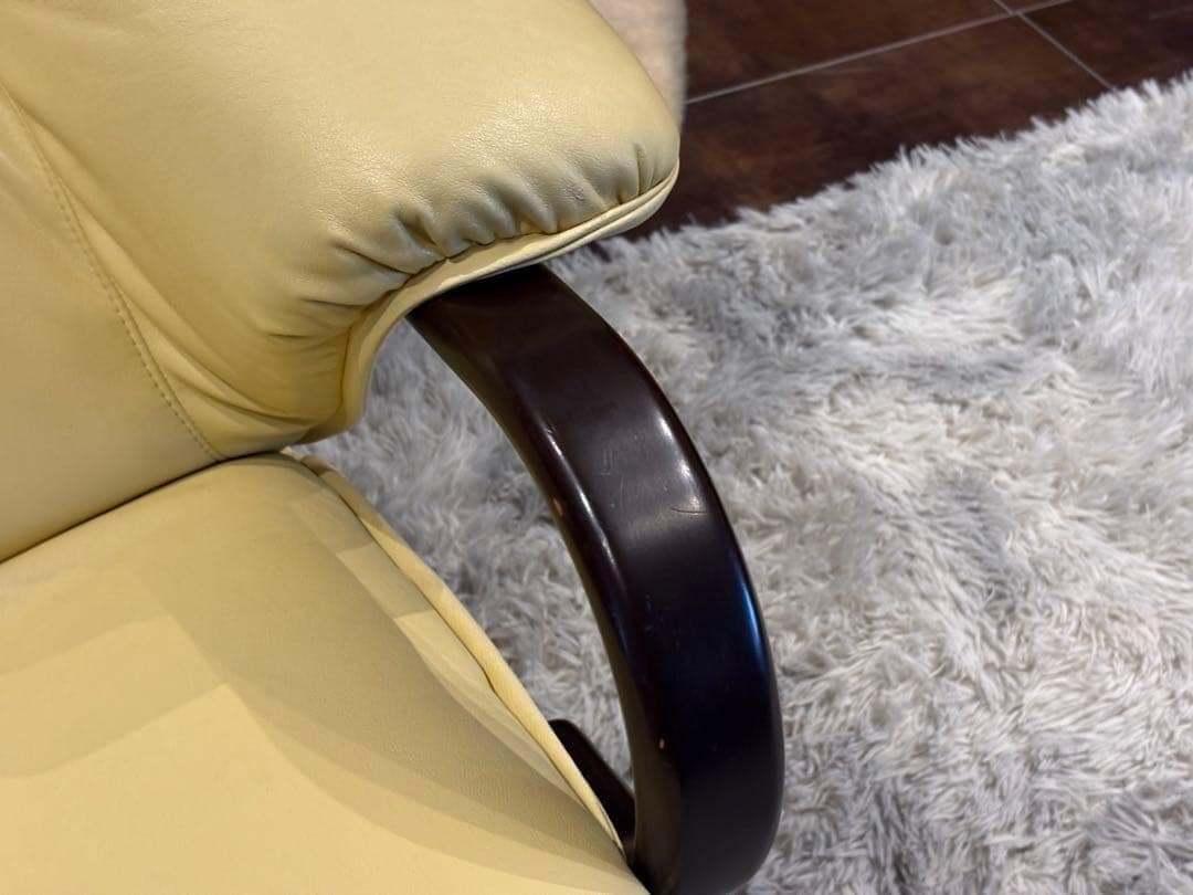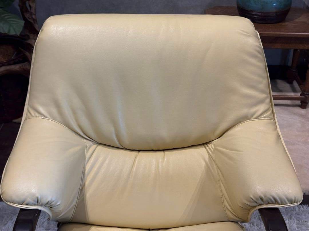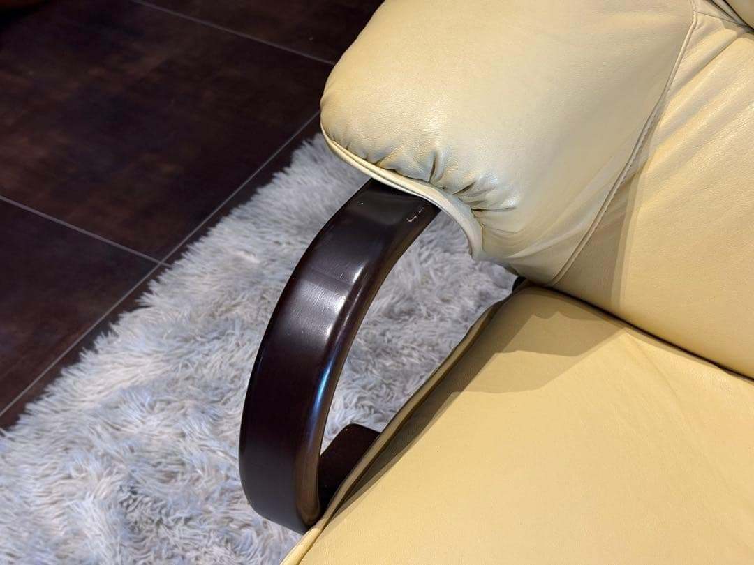 徳島発の高級家具ブランド、富士ファニチアによるベージュレザーソファ。