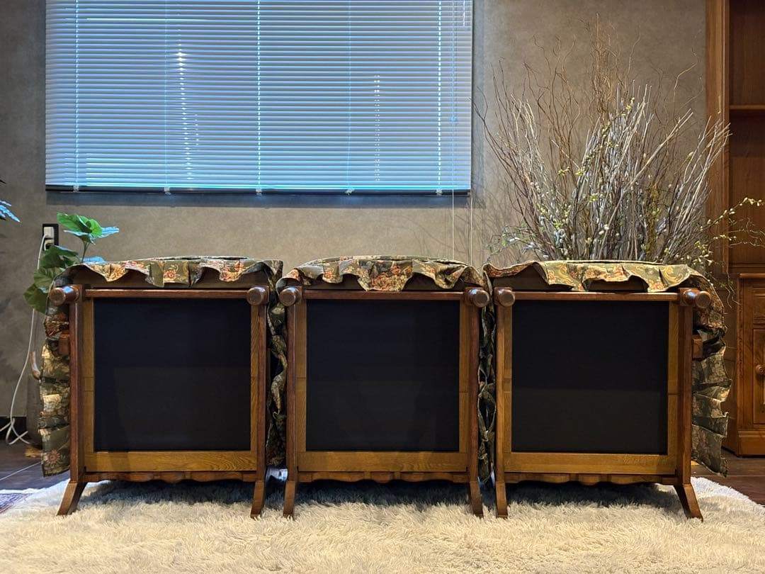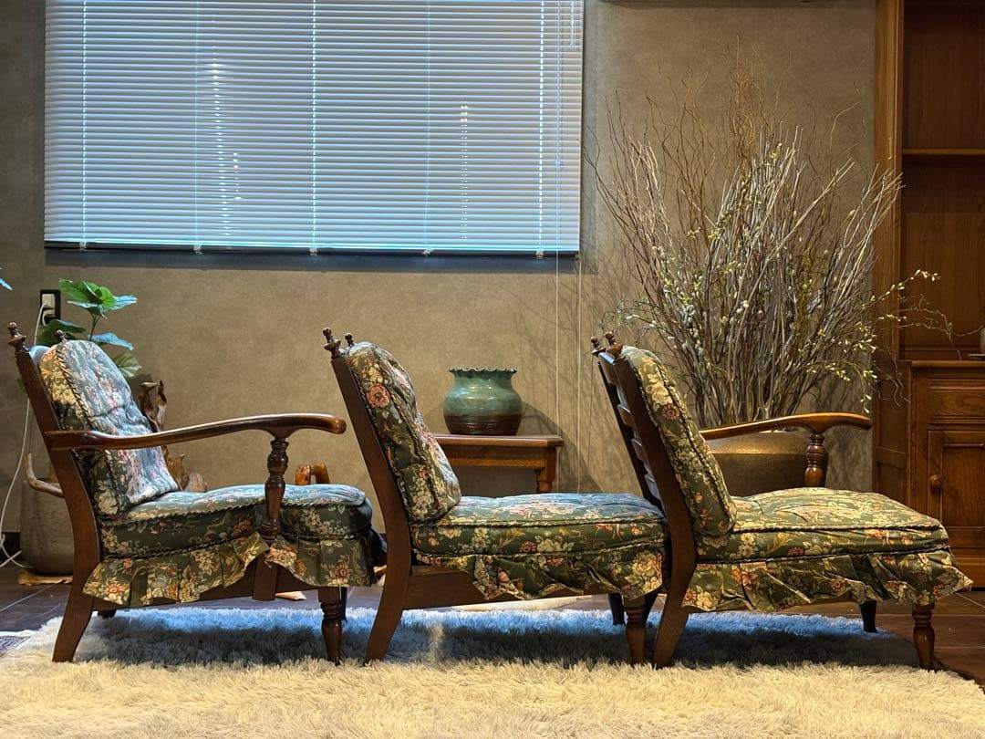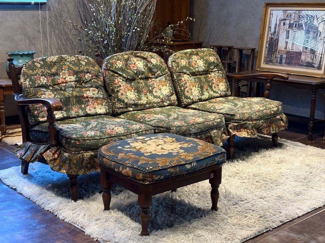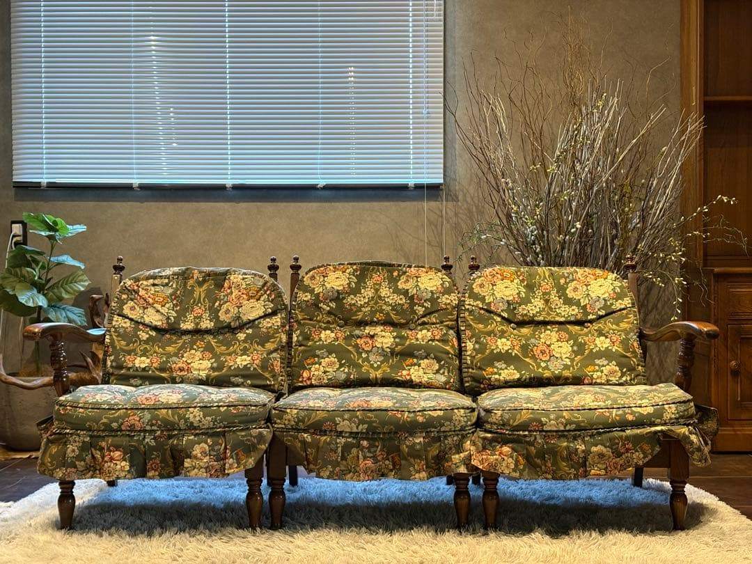 飛騨産業 キツツキマーク 3人掛けソファ セパレートソファ オットマン アームソファ ラウンジソファ クラシック家具 ビンテージ家具 アンティーク家具 花柄ソファ 木製ソファ 高山家具 ナチュラル家具 カントリースタイル クラシカルインテリア 日本製家具