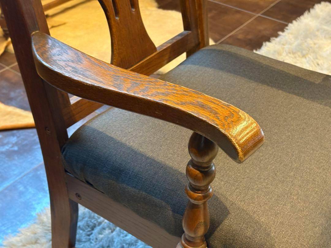 アンティーク ヴィンテージ 洋風 アームチェア 肘付き椅子 肘付きソファ アームソファ クラシック クラシカル ミッドセンチュリー 三越ブルージュ 伊勢丹 三越 高級家具 オーク材 無垢材 リメイク アップサイクル カフェ 開業 店舗什器 洋風 ヨーロッパ ヨーロピアン
