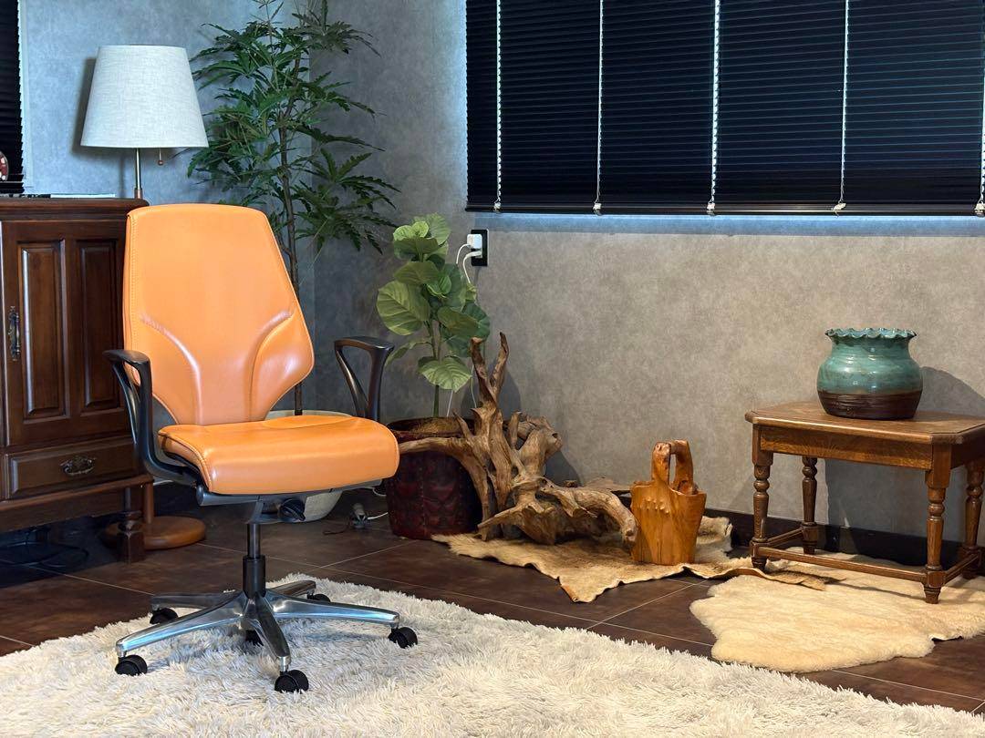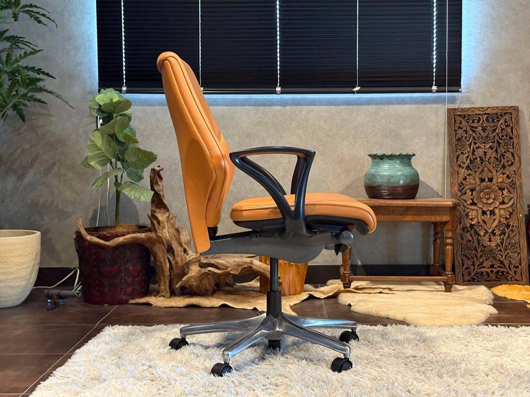 シートの高さ調整やリクライニング機能はもちろん、背面の傾斜具合も細かく調整可能。まさに“ワークチェアの完成形”とも言える一脚です。