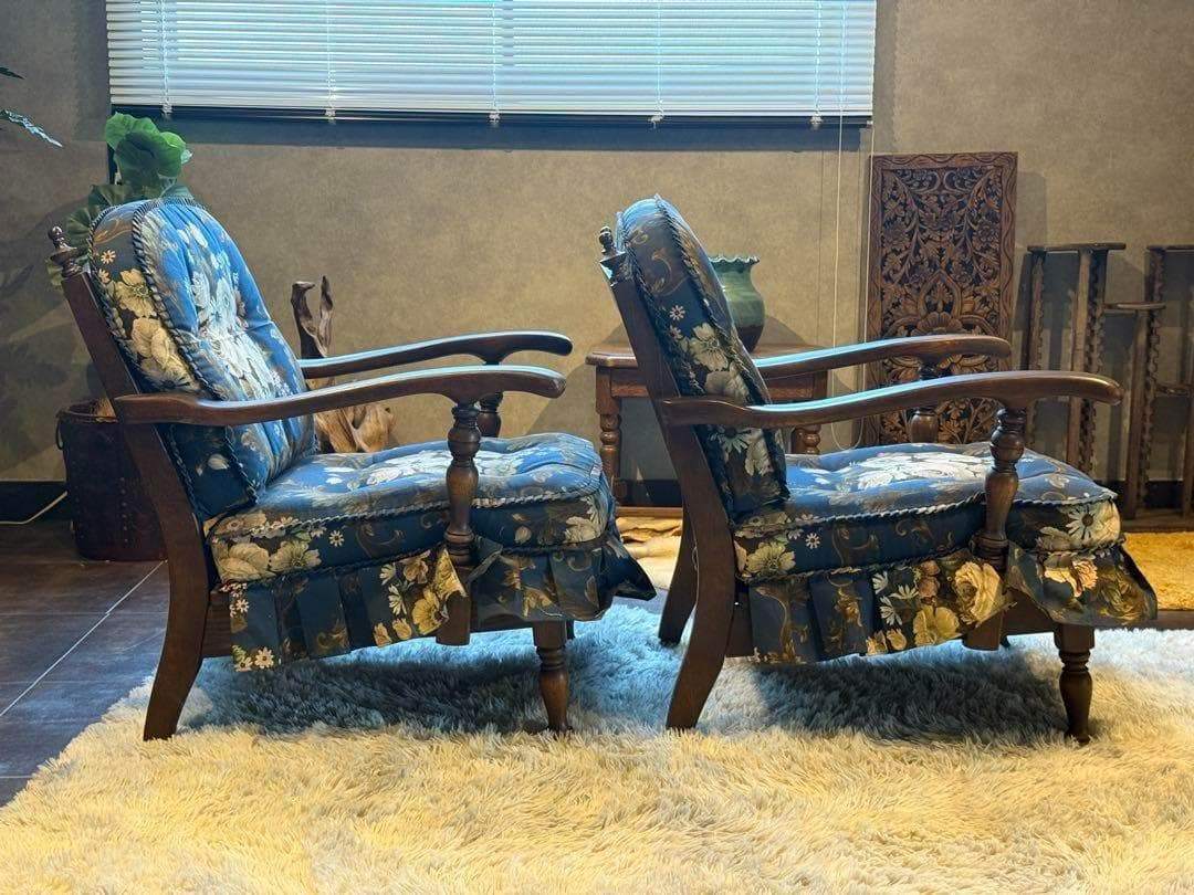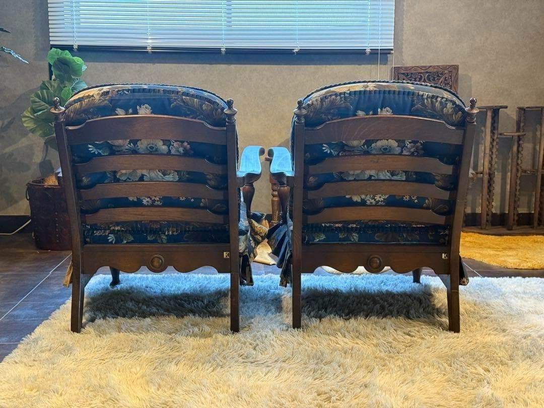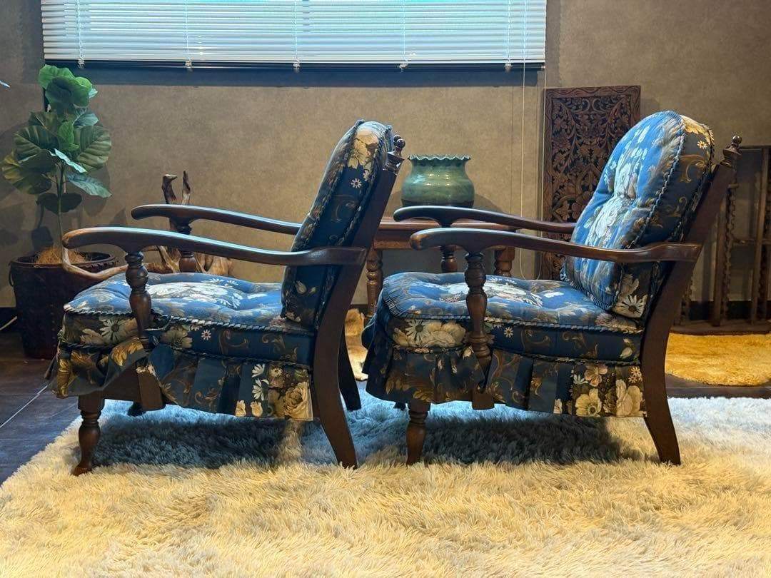 飛騨産業 キツツキ HIDA アームチェア アームソファ 肘掛け椅子 肘付きソファ 花柄 クラシック ヴィンテージ ビンテージ 国産家具 サロンチェア 応接椅子 高級家具 木製 2脚セット