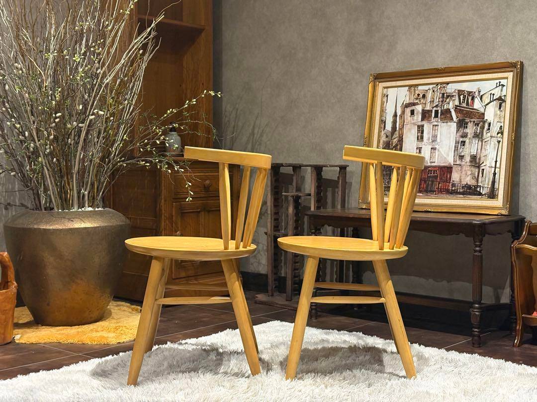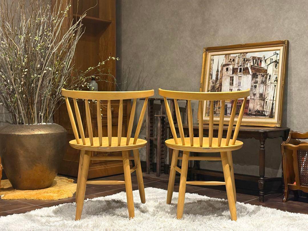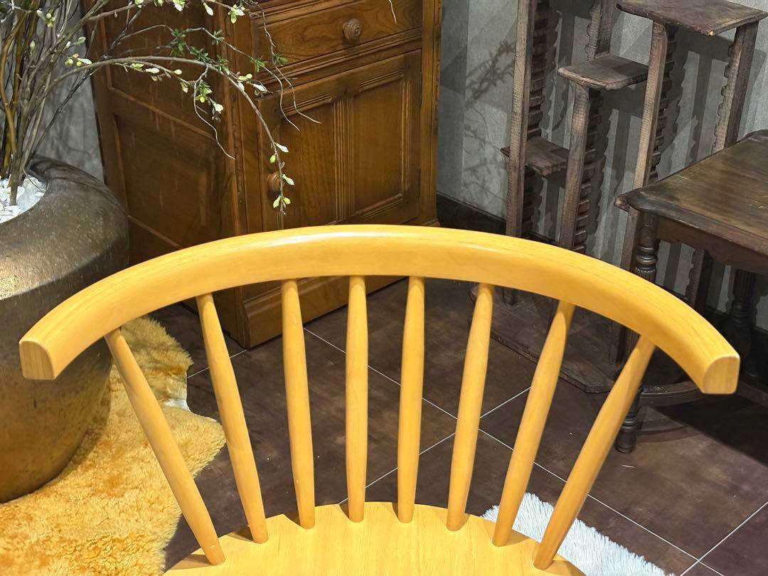 ナチュラルな木の風合いと、やわらかなイエロー系カラーが魅力のウィンザーチェア。