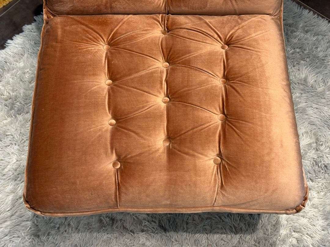 ふっくらとしたボリュームのあるクッションと、ボタン留めのクラシカルなデザインが特徴。