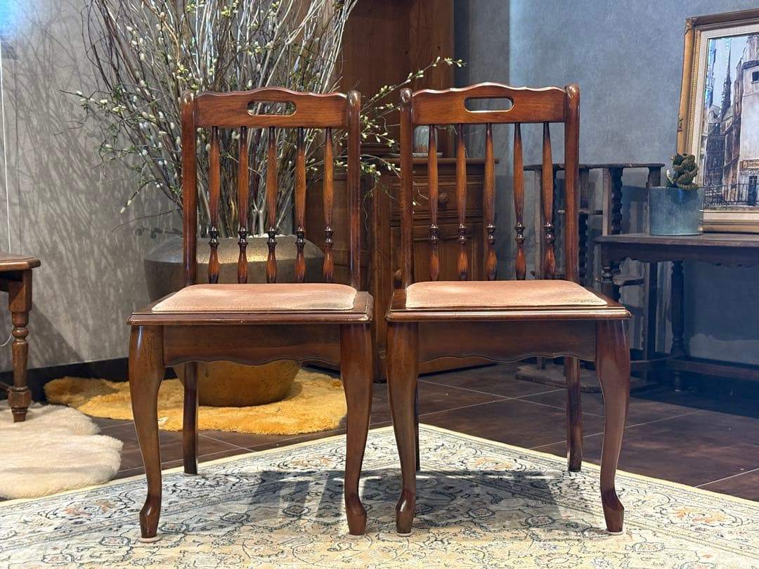 ①光製作所 ダイニングチェア リビングチェア 猫脚 アンティーク ビンテージ R