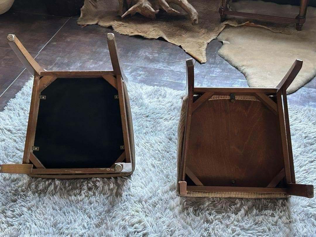 飛騨産業とマルニ製のラタン(籐)を背面にあしらったヴィンテージチェア2脚セットです。