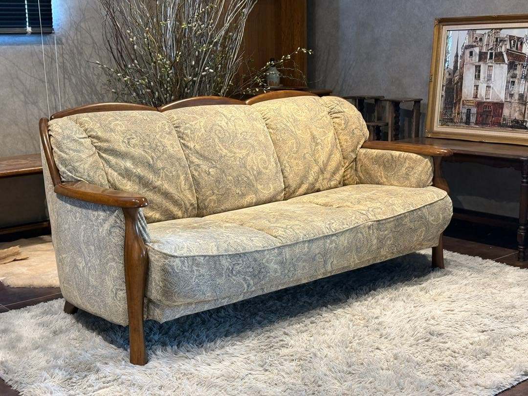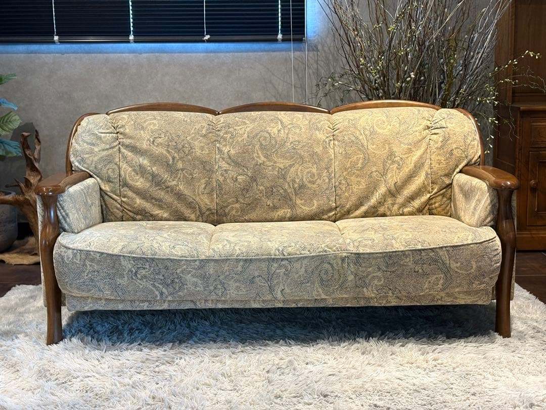 ソファ 3人掛けソファ 3Pソファ ファブリックソファ 木製フレーム アームソファ アンティーク ヴィンテージ ビンテージ レトロ家具 クラシック家具 インテリア 店舗什器
