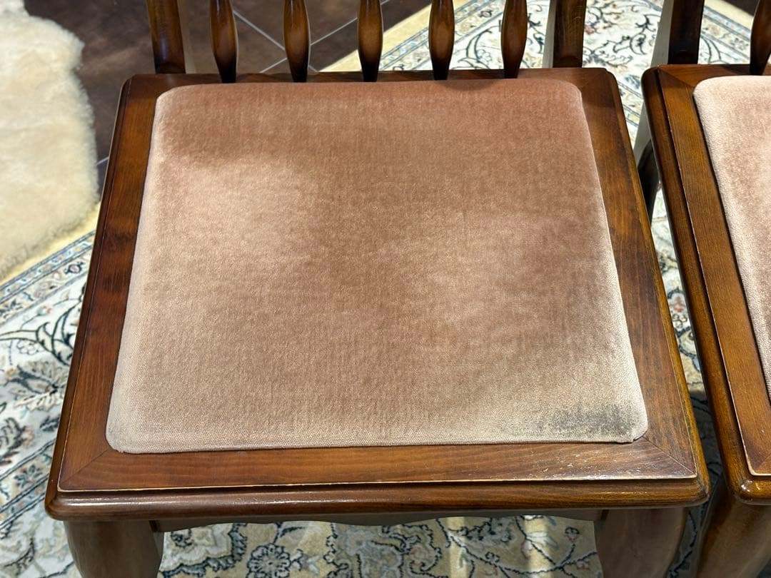木部の深みある色合いと、座面クッションのやさしい質感が調和し、
