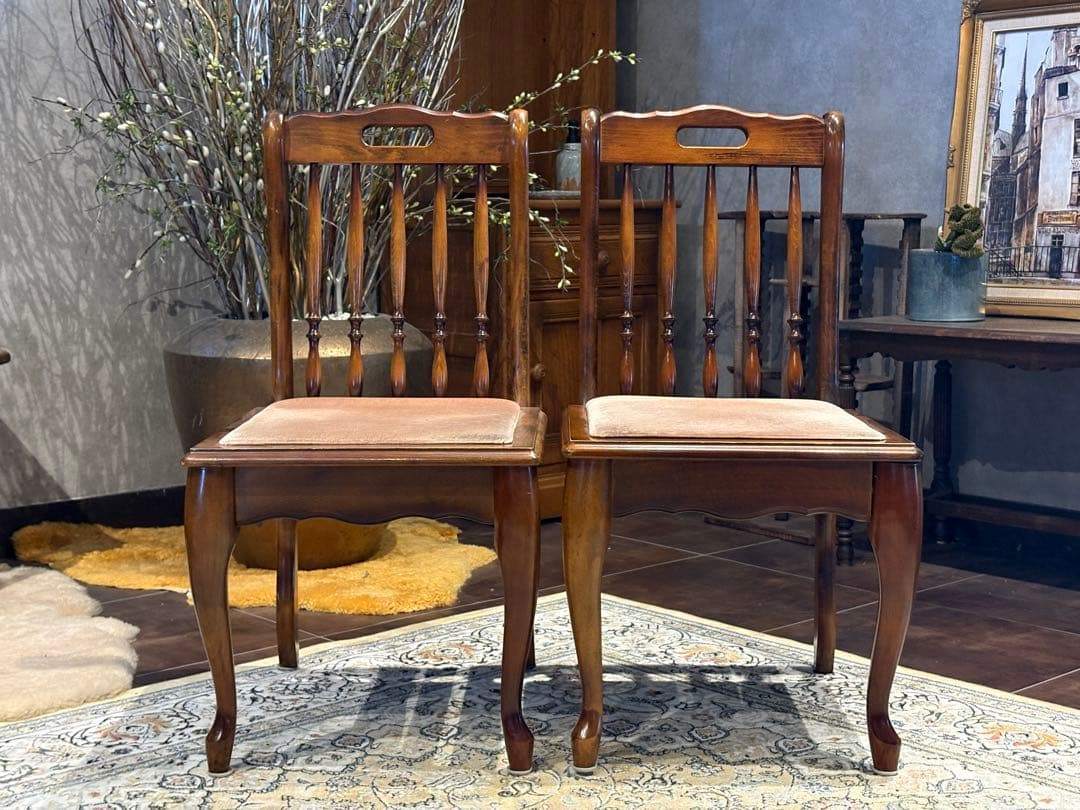 緩やかな曲線を描く猫脚と、縦格子の背もたれが印象的なクラシカルデザインで、上品さと温かみを兼ね備えた一脚です。