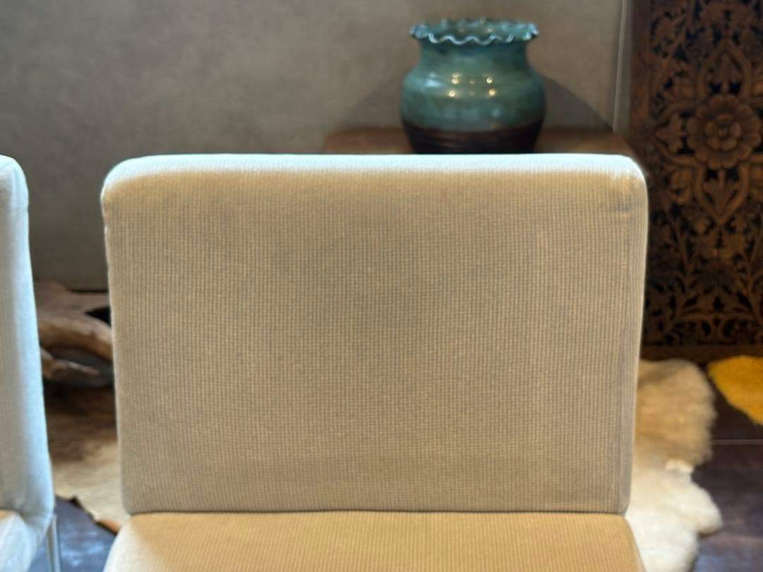 ミニマルな直線構成とファブリックの柔らかな質感が調和し、軽やかさと落ち着きを併せ持った佇まいに仕上がっています。