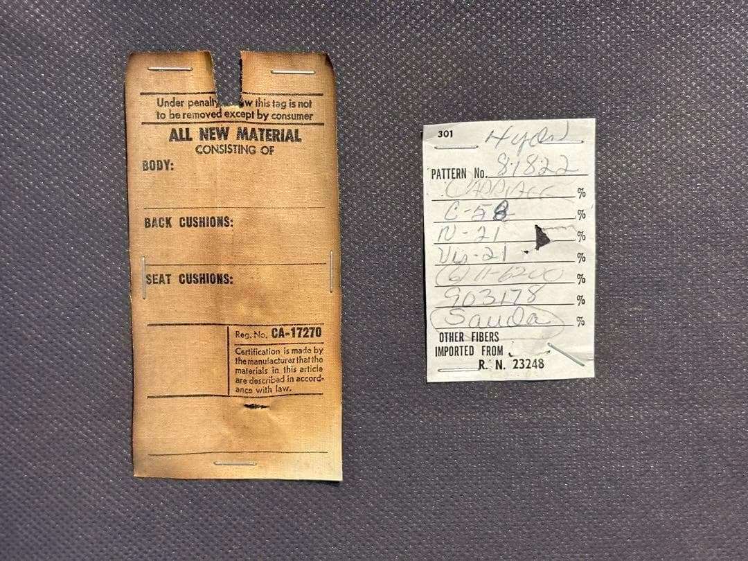 ビンテージ感を損なわないよう、座面裏のタグは一度剥がしたうえで丁寧に貼り直しております。