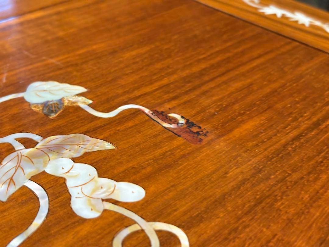 艶やかな木肌に映える繊細な螺鈿装飾が美しく、和の気品とアジアンテイストが調和した一台。