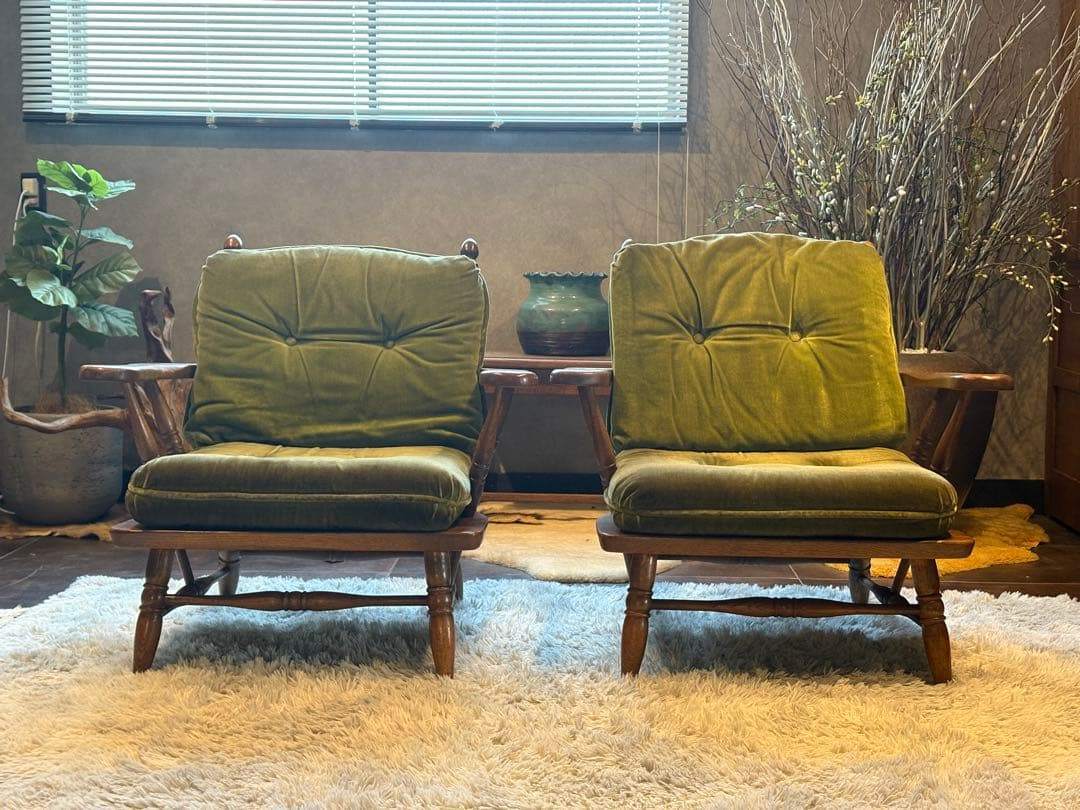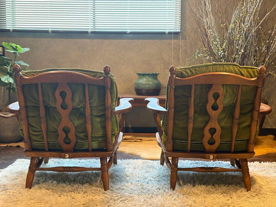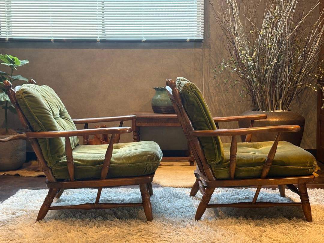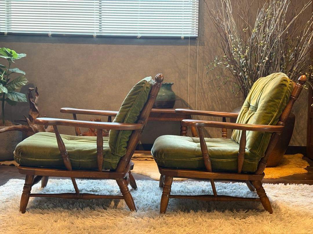 コスガ KOSUGA アームチェア アームソファ 1人掛けソファ ラウンジチェア リビングチェア ダイニングチェア ビンテージ家具 アンティーク家具 クラシック家具 木製家具 北欧インテリア ナチュラル家具 レトロモダン 昭和レトロ グリーンファブリック カフェインテリア 上品家具 高級家具 ミッドセンチュリー