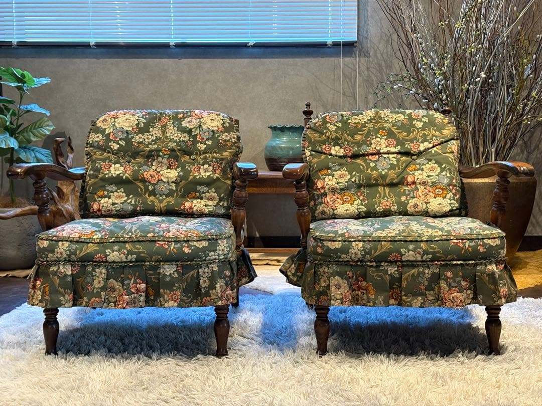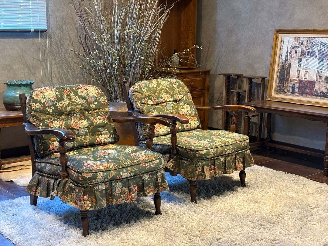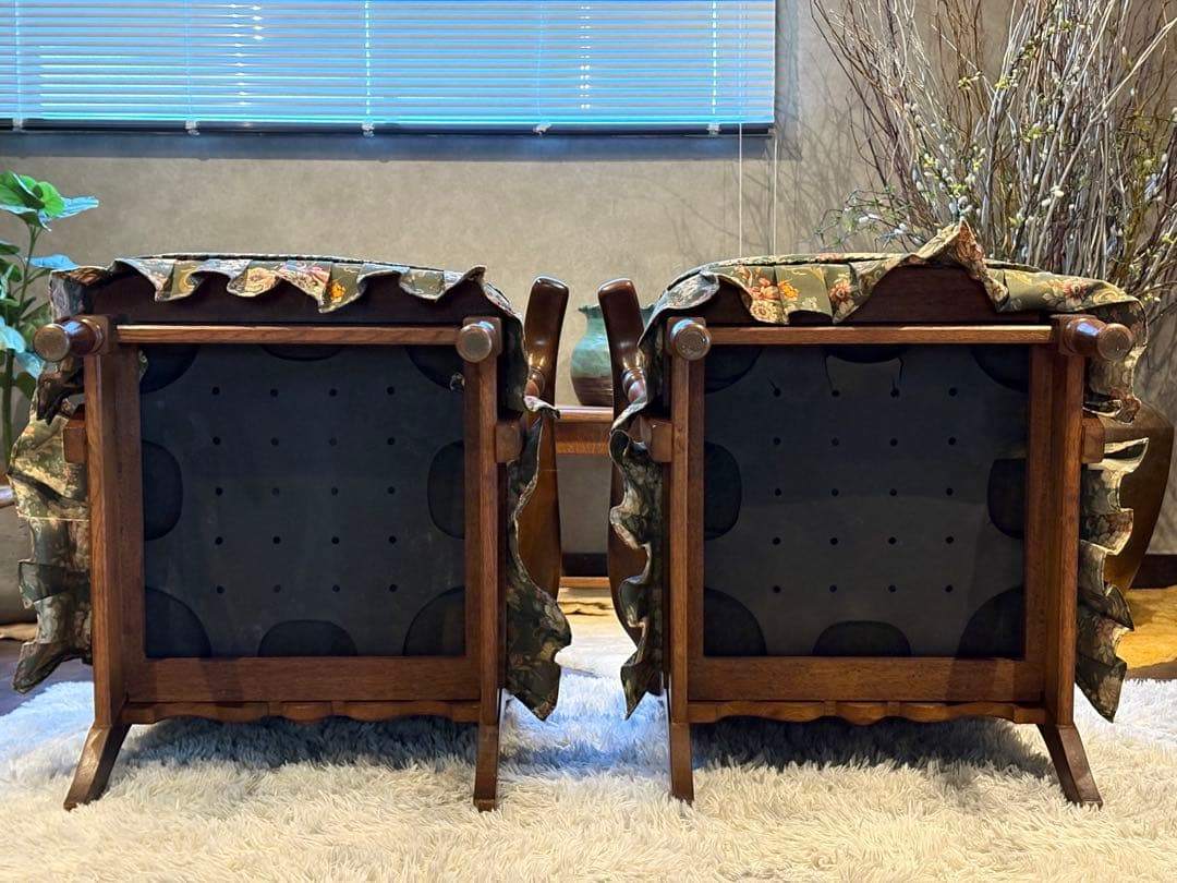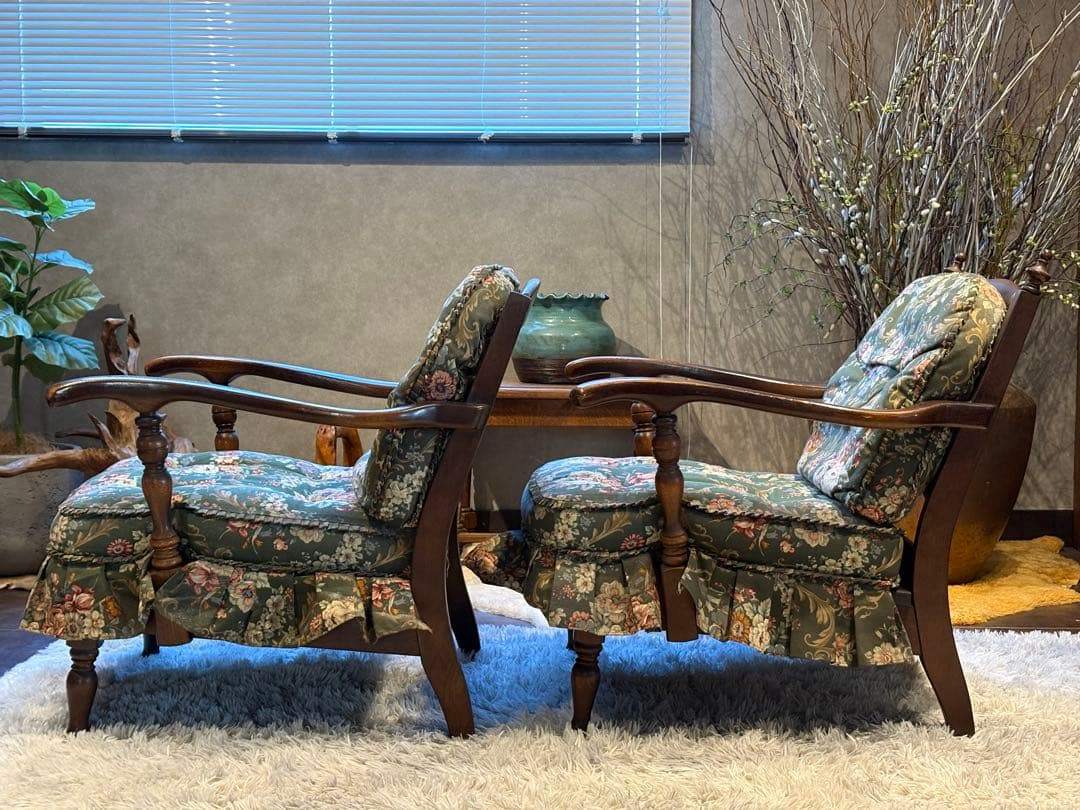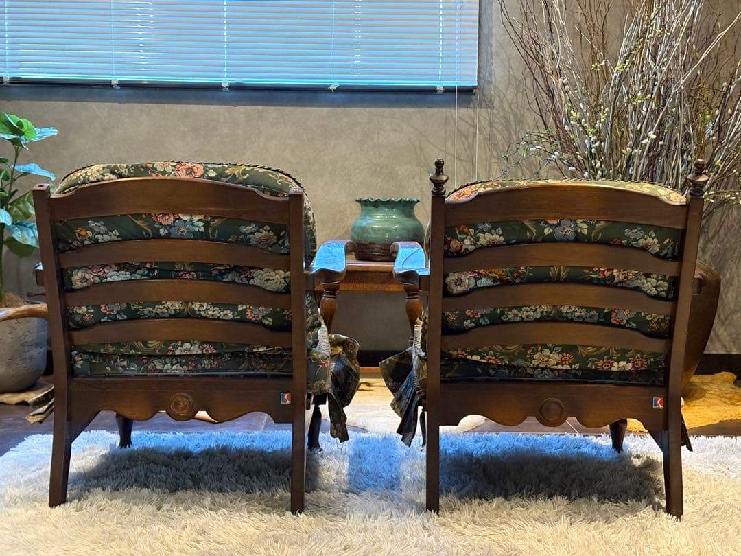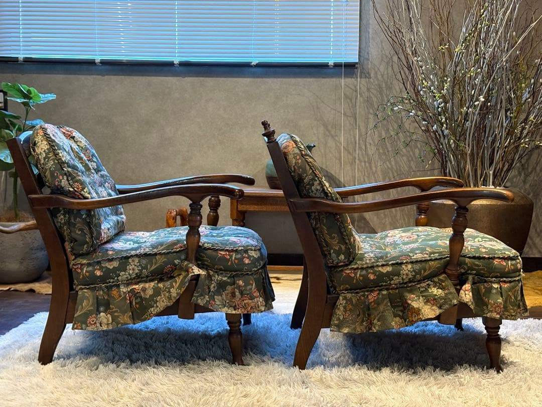 飛騨産業 キツツキマーク アームチェア アームソファ リビングチェア ラウンジチェア クラシック家具 アンティーク家具 ビンテージ家具 木製チェア ファブリックチェア 花柄ソファ レトロ家具 高山家具 ナチュラル家具 ヨーロピアンスタイル 輸入家具風 職人家具 日本製家具 エレガントインテリア