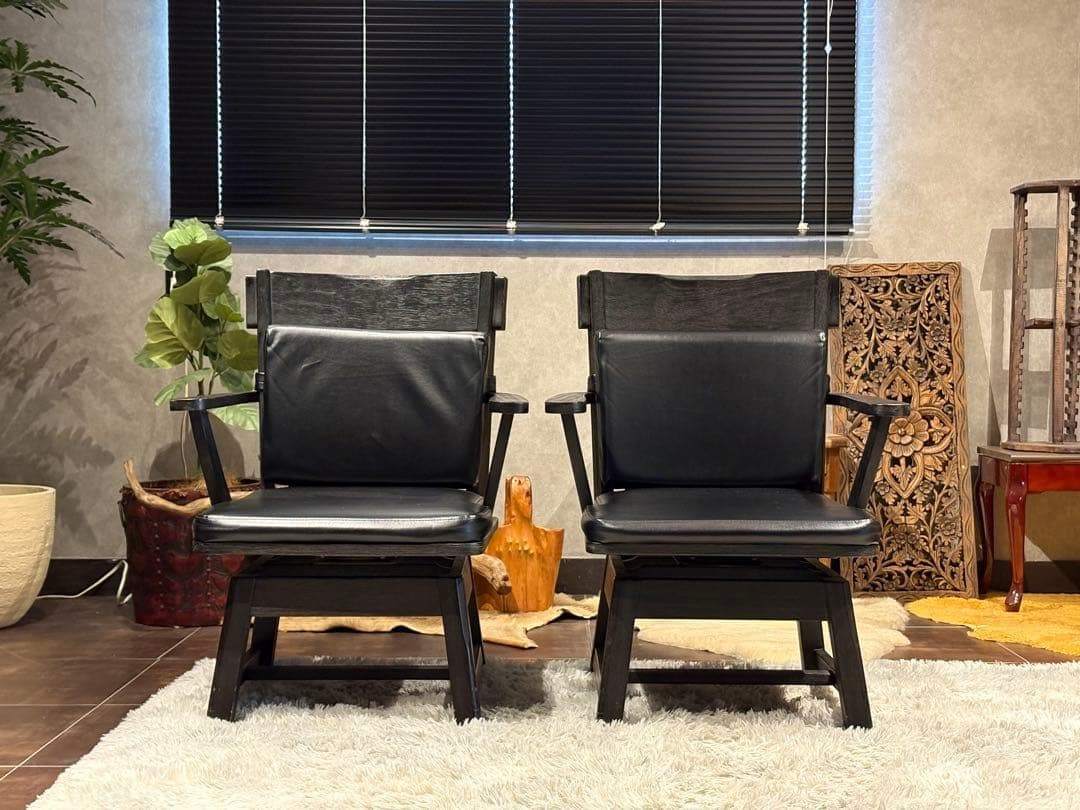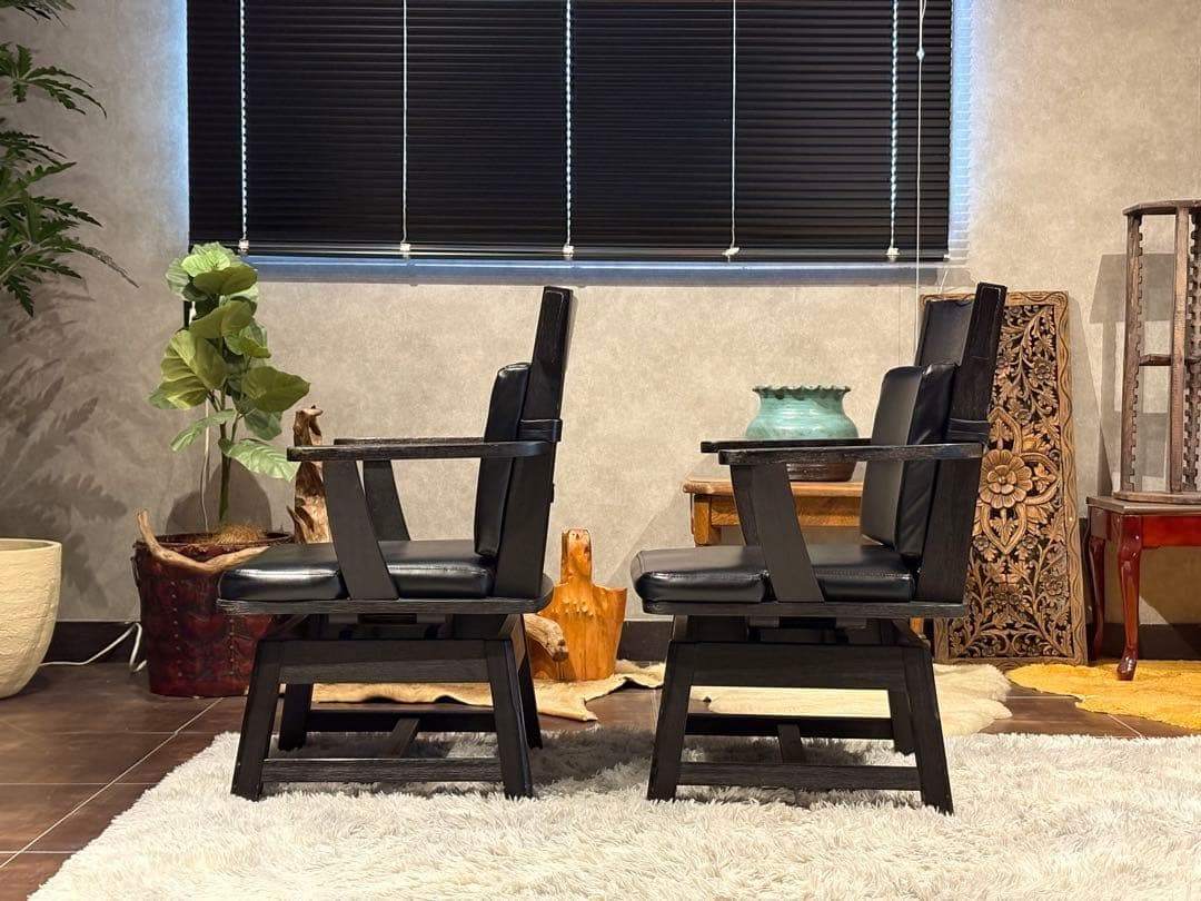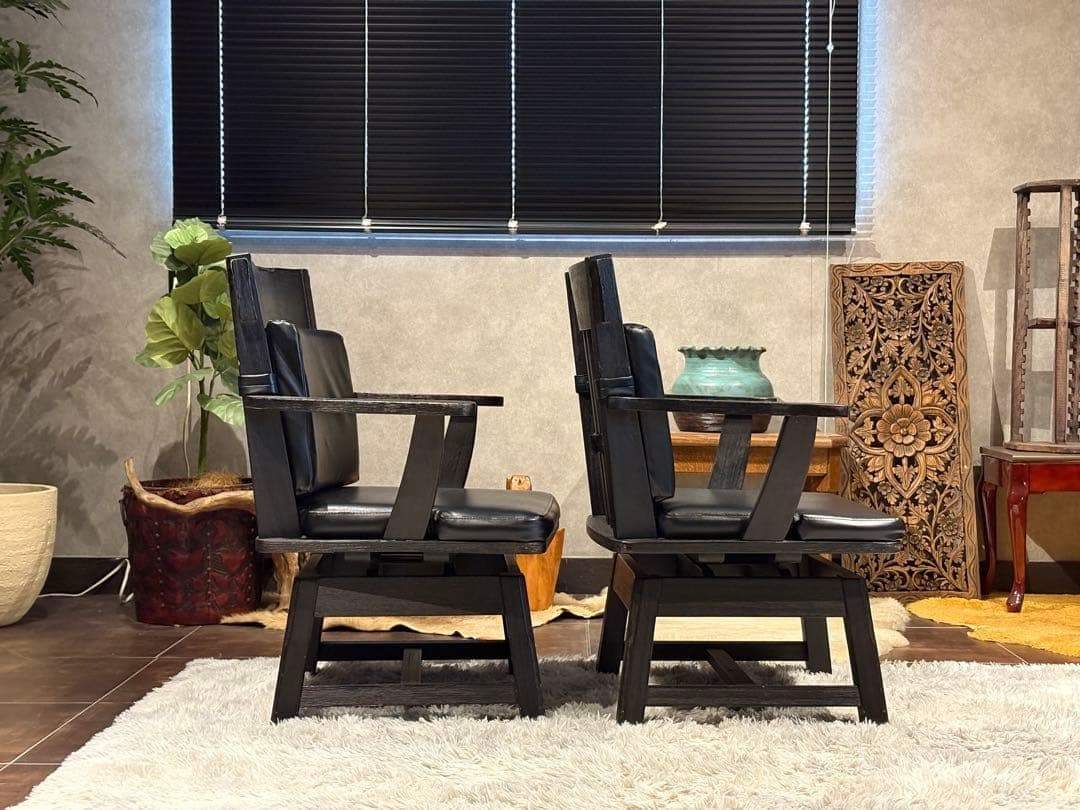 回転式チェア アームチェア ダイニングチェア リビングチェア 椅子 ビンテージ ヴィンテージ アンティーク 北欧モダン ブラックチェア ラバーウッド 和モダン 大正モダン 昭和レトロ