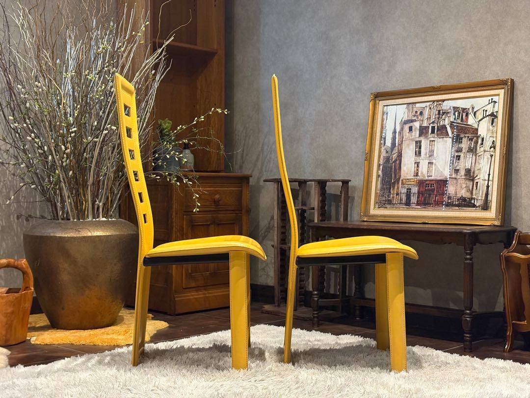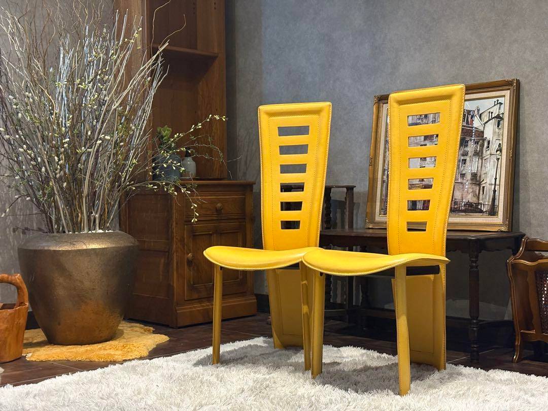 IDC大塚家具 ハイバックチェア 廃盤 モダン ミッドセンチュリー デザイナーズチェア ダイニングチェア リビングチェア ビンテージ ヴィンテージ イエローチェア 北欧 POP