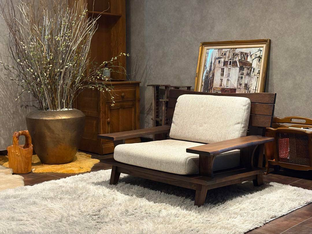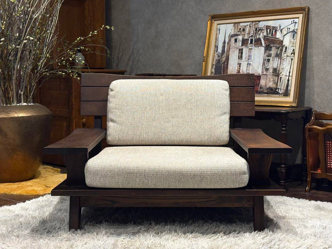 NITORI ニトリ アケビ ラウンジソファ 1人掛けソファ シングルソファ ビンテージ ナチュラルインテリア モダン家具 木製フレームソファ レトロモダン リビングソファ ナチュラルモダン おしゃれ家具 インテリアソファ ヴィンテージスタイル リラックスソファ カフェ風インテリア 高級感ソファ デザインソファ