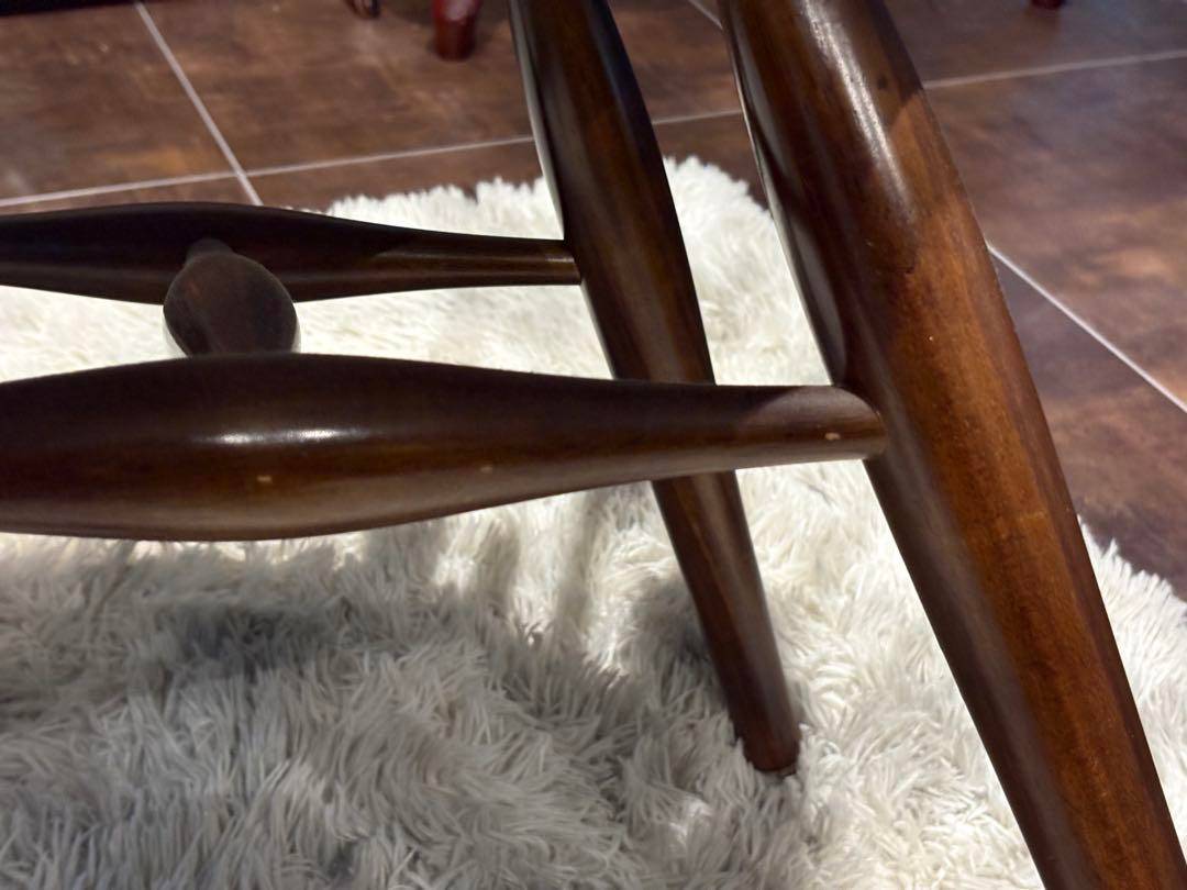 シンプルでありながら存在感のあるスポークデザインが特徴で、無垢材の質感とクラフトマンシップがしっかりと感じられる一脚。
