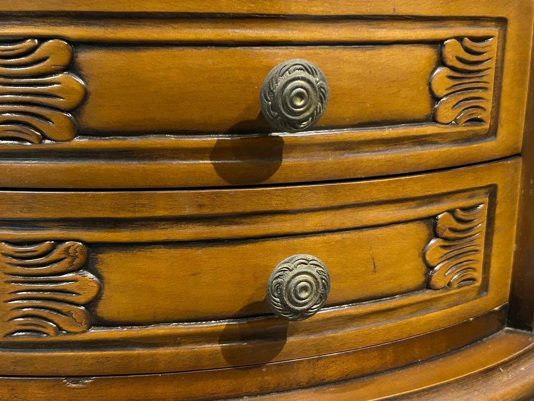 優雅な曲線と木彫装飾が魅力のラウンド型クラシックコンソールチェスト。