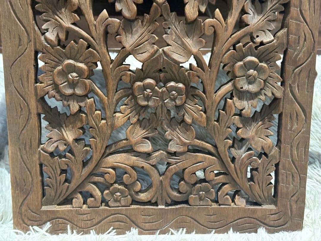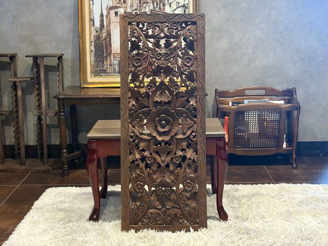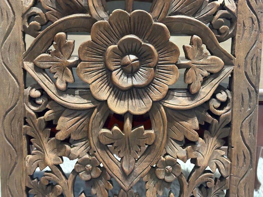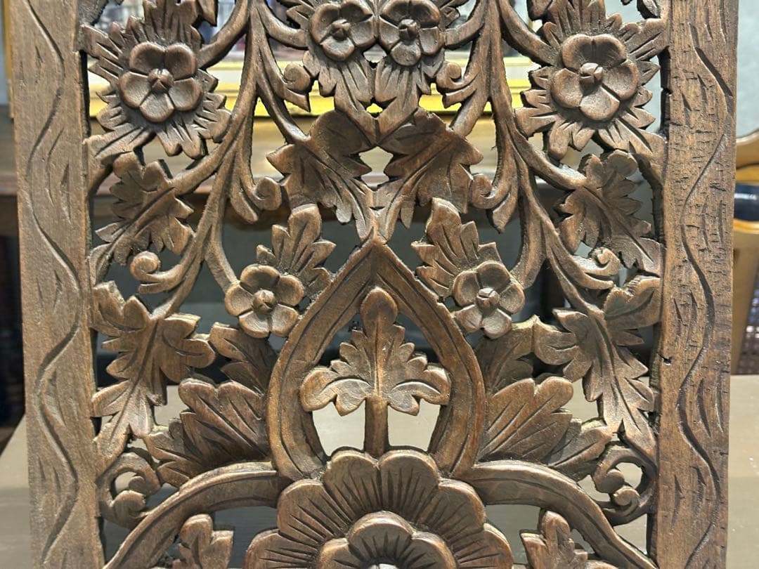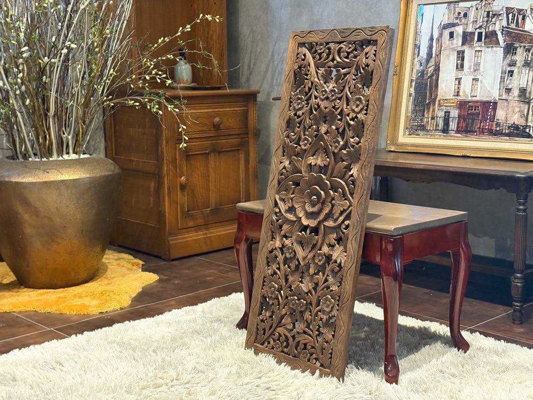 繊細な花や草木の彫刻が全面に施され、立体的で存在感のあるウォールデコレーション。